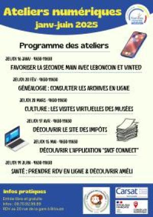 - les ateliers thématiques, où nous explorons un thème défini (Visites de musées en ligne, Découvrir l'application SNCF Connect...) ;