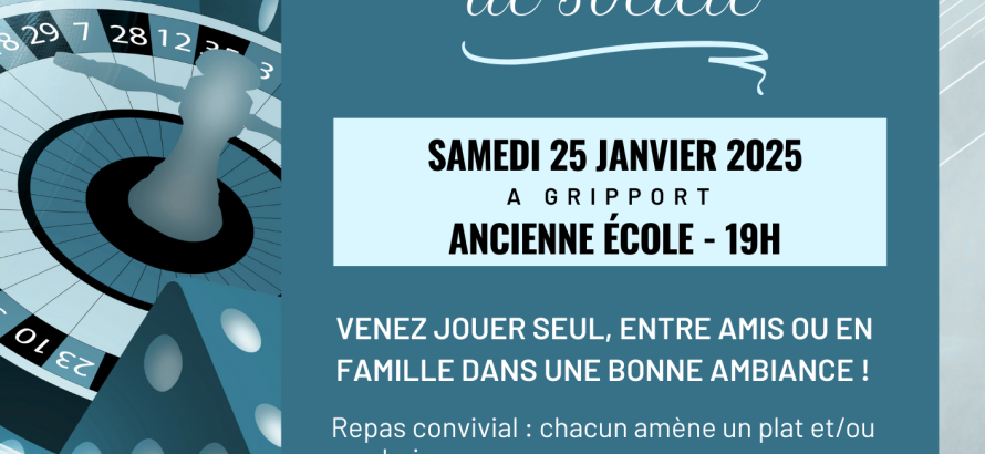 Venez jouer seul, entre amis ou en famille dans une bonne ambiance ! Chacun amène un plat et/ou boisson à partager, on offre la galette des rois.