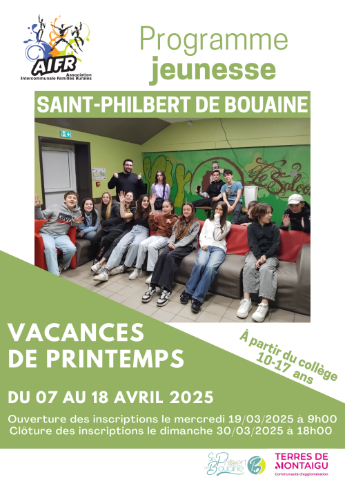 Le dossier d'inscription est à retourner en Mairie de Saint-Philbert-de-Bouaine, à l'attention de l'animateur jeunesse ou à envoyer par mail à : anim.saintphilbertdebouaine@aifr.frAttention ! Les places sont limitées, elles sont attribuées par ordre d'arrivée (dossier complet) et non par sélection sur dossier. Un jeune non retenu sur une période sera prioritaire sur les prochaines missions proposées.