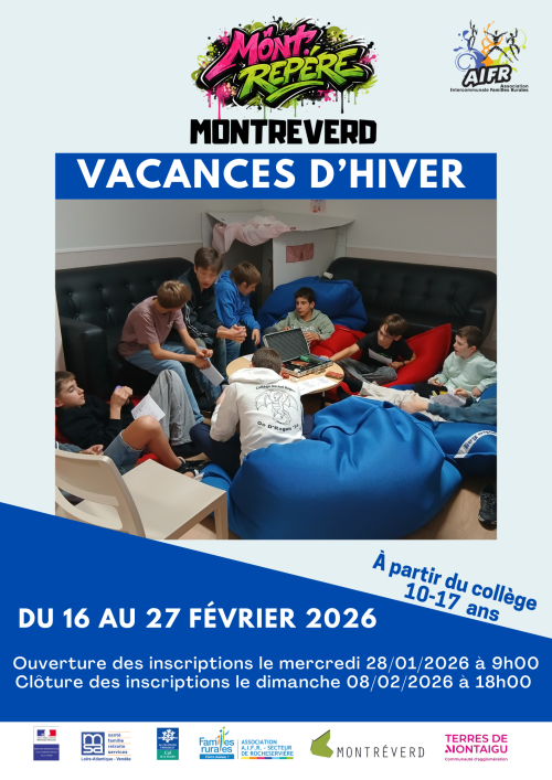Le dossier d'inscription est à retourner en Mairie de Saint-André-Treize-Voies, à l'attention de l'animatrice jeunesse ou à envoyer par mail à : anim.montreverd@aifr.frAttention ! Les places sont limitées, elles sont attribuées par ordre d'arrivée (dossier complet) et non par sélection sur dossier. Un jeune non retenu sur une période sera prioritaire sur les prochaines missions proposées.