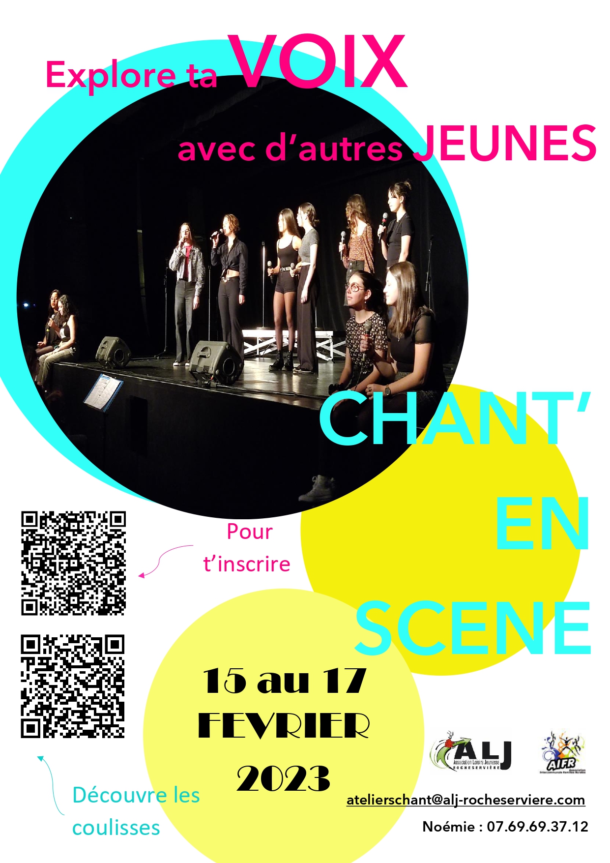 Du 15 au 17 février, l’ALJ organise Chant’En Scène pour permettre aux jeunes, quel que soit leur niveau, de se faire plaisir en chanson et de découvrir les joies de la scène avec d’autres jeunes.