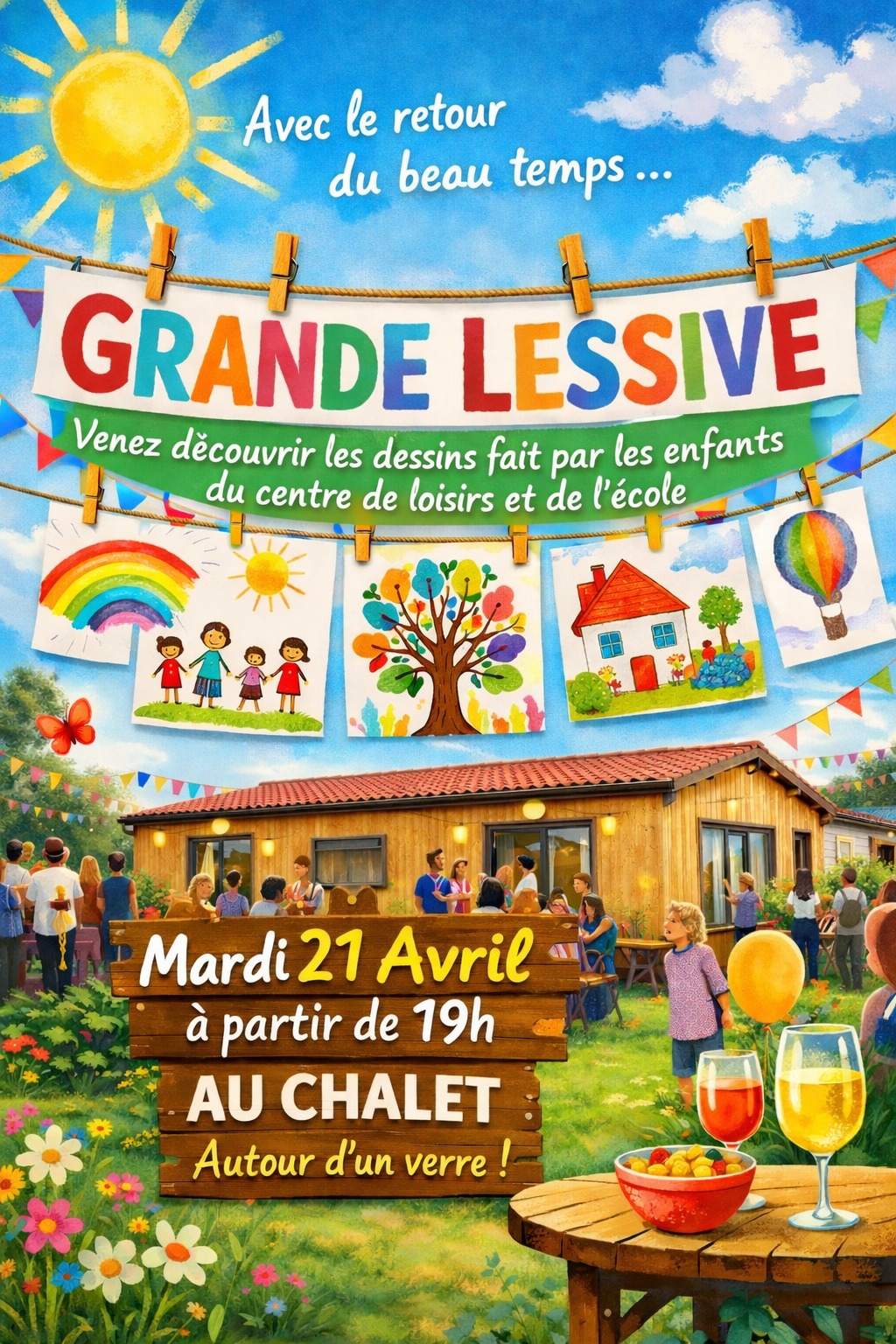 À l’occasion de l’assemblée générale de Familles Rurales, qui se tiendra le 21 avril à 19h30 au chalet et à laquelle vous êtes bien sûr chaleureusement invité, nous vous proposons de démarrer la soirée en beauté avec une GRANDE LESSIVE dès 19h !