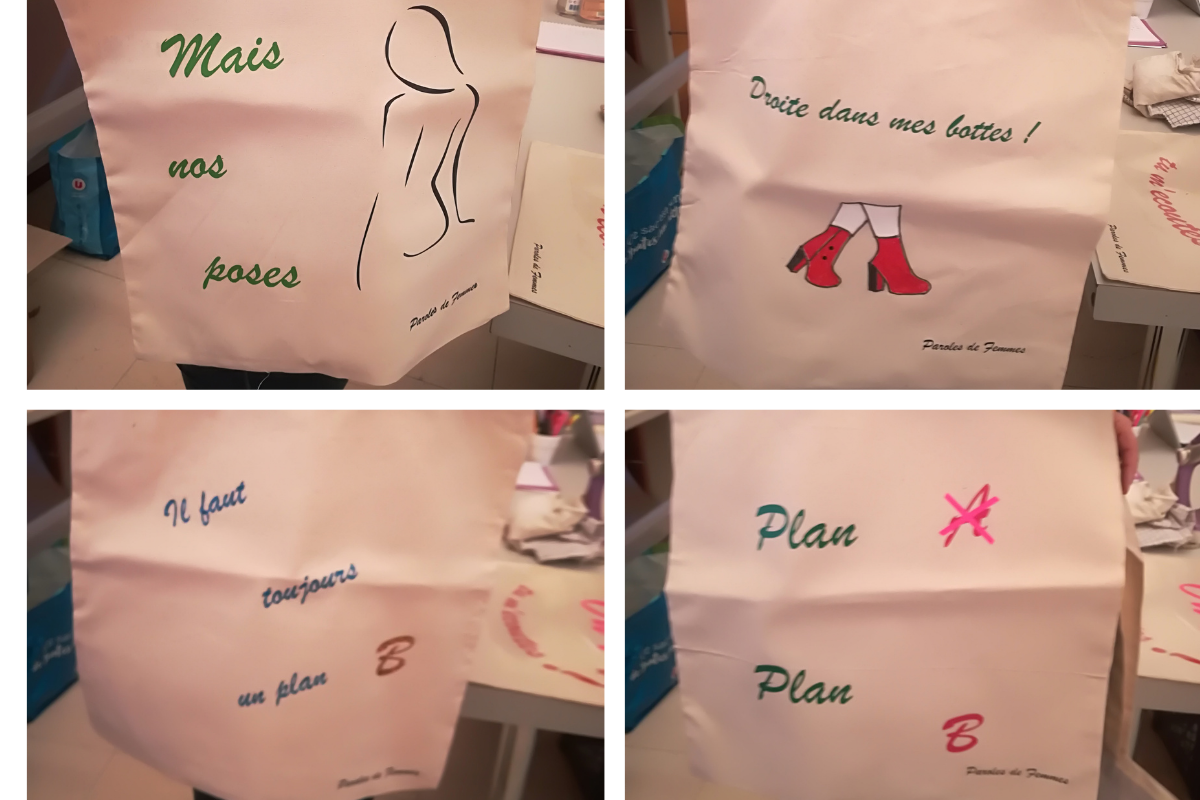 Vente de sacs en tissu floqués par le groupe de bénévoles "Paroles de femmes"
