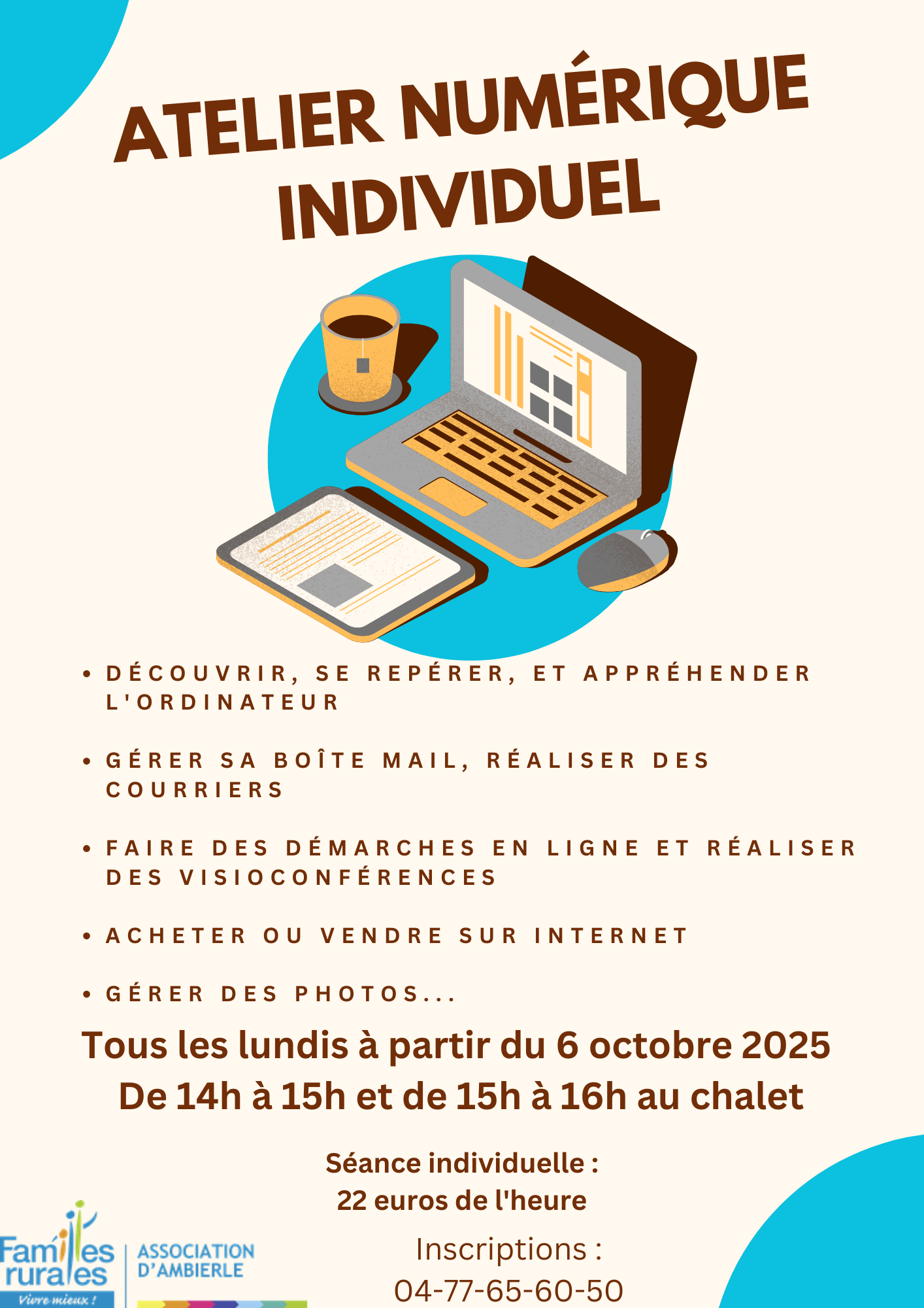 L'objectif de ces ateliers est de permettre à chacun de découvrir ou améliorer sa pratique de l'outil informatique.