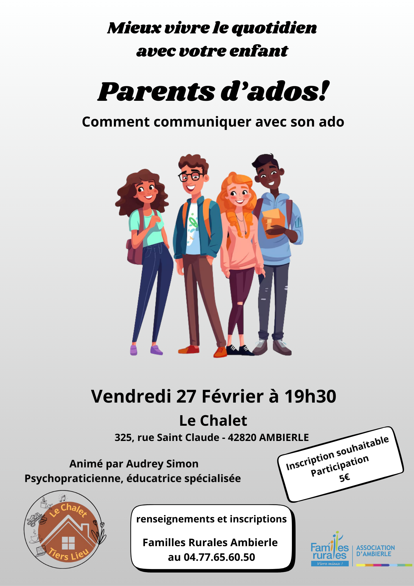 Nous vous invitons à une conférence dédiée aux parents d’adolescents afin d’échanger autour des transformations liées à cette étape de vie :