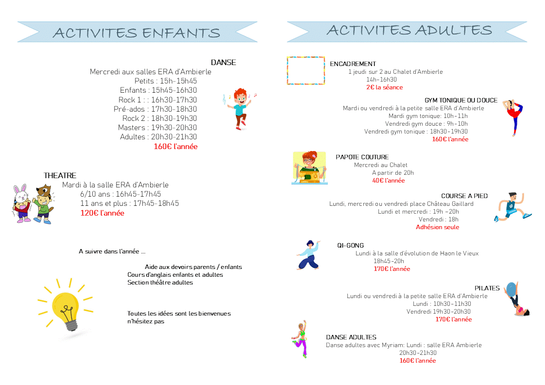 C'est la rentrée l'occasion pour vous de découvrir ou re découvrir nos activités et notre fonctionnement