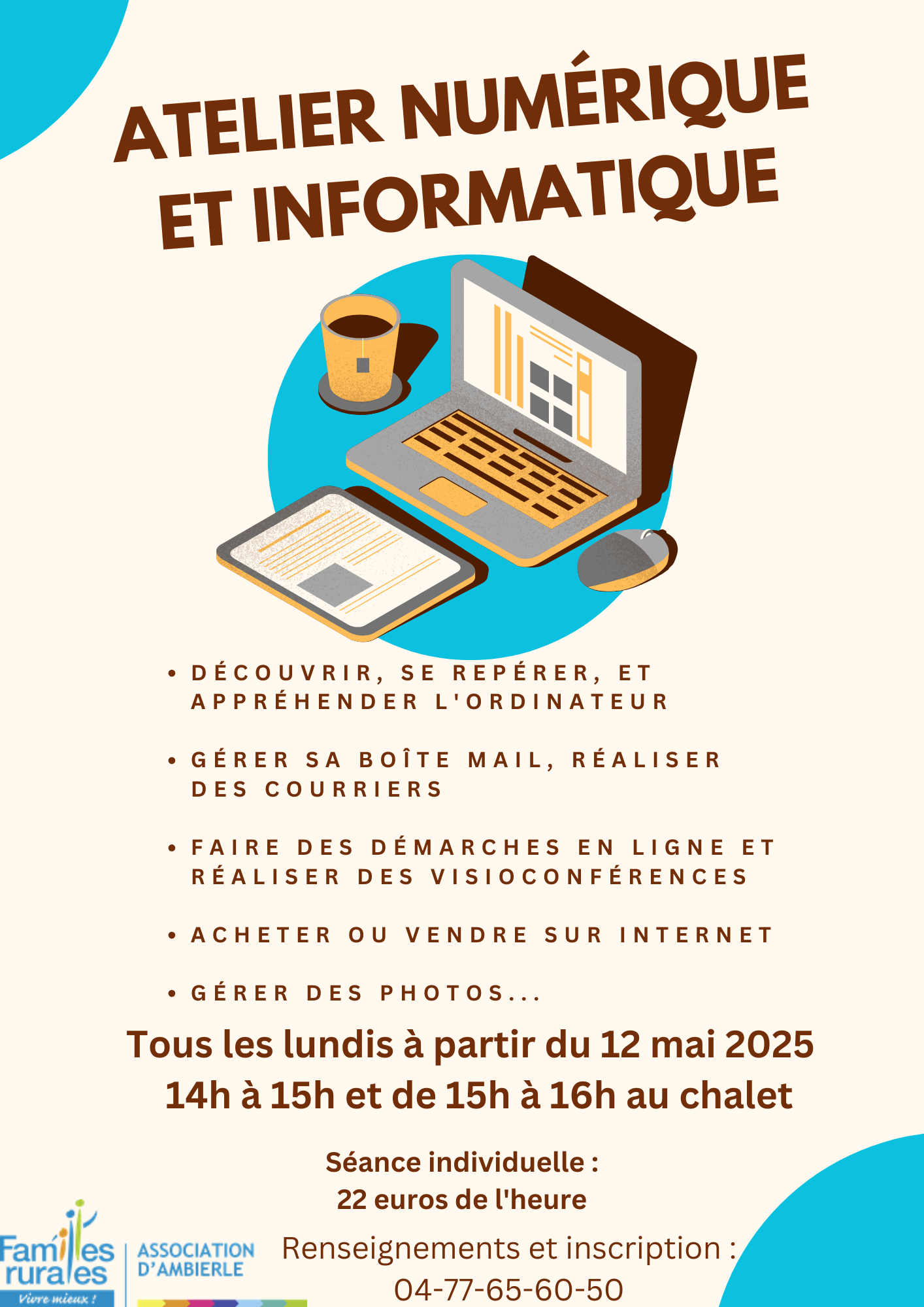 Les ateliers numériques et informatiques sont de retour. Les séances sont individuelles et sont personnalisées selon vos besoins et vos envies. Inscriptions obligatoire 7 mai 2025