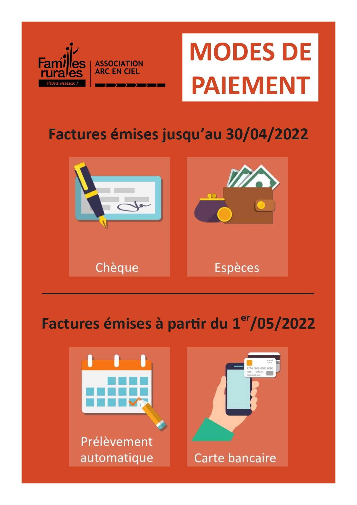 Avec la mise en place du Portail Familles, le règlement des factures se fait par :