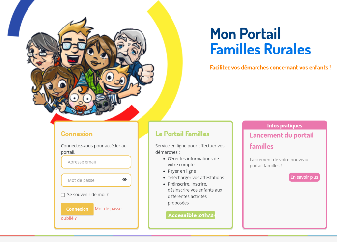 - Des pièces à joindre au dossier (assurance, CAF, photo identité)Attention, ce portail famille remplace toutes les fiches d’inscription annuelles et mensuelles utilisées jusqu'à présent. Il est donc impératif de remplir le questionnaire sans quoi vous ne pourrez pas inscrire votre enfant.