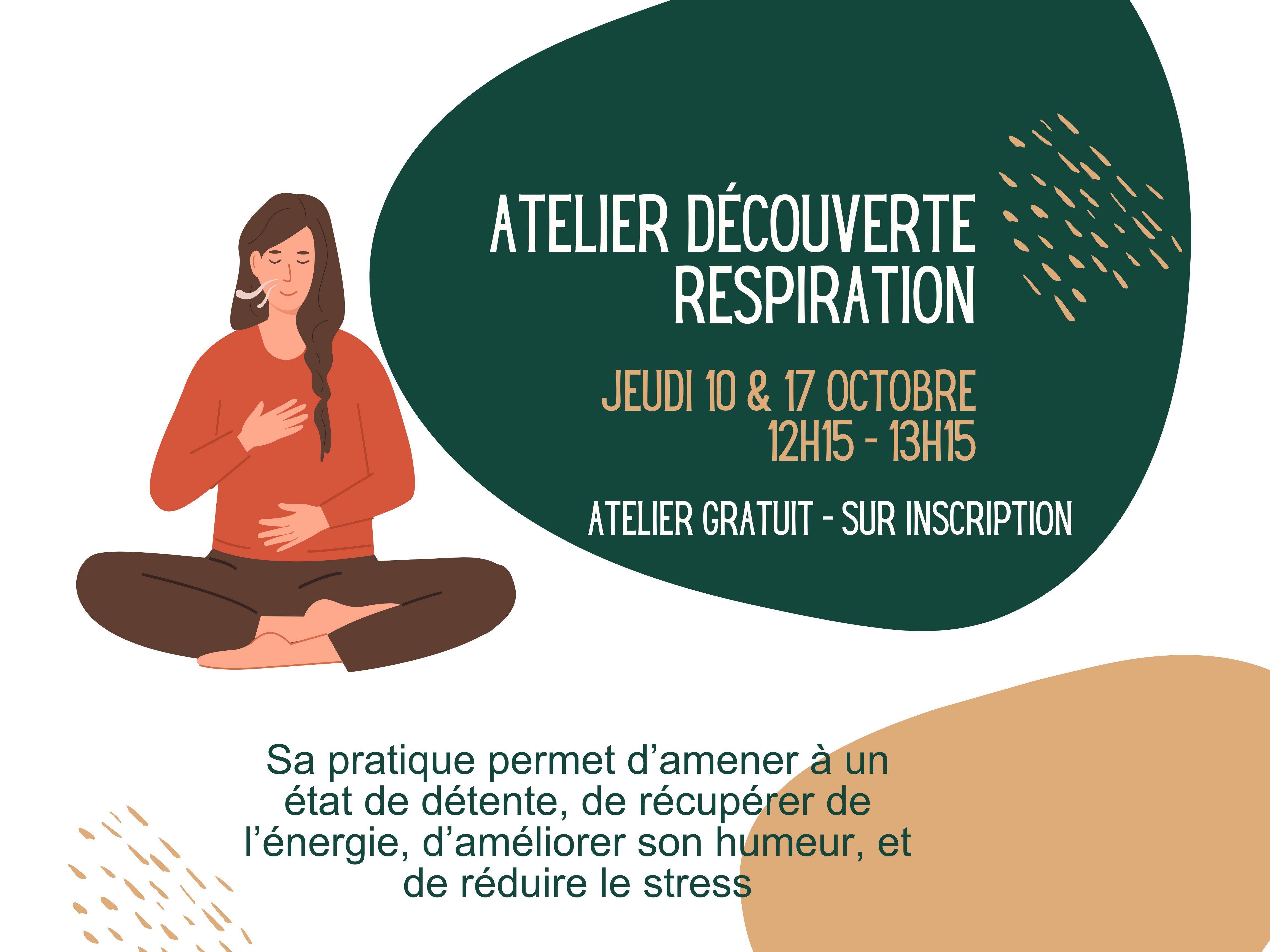 Une bonne respiration peut avoir de réels bénéfices sur votre é𝗾𝘂𝗶𝗹𝗶𝗯𝗿𝗲 𝗽𝗵𝘆𝘀𝗶𝗾𝘂𝗲 𝗲𝘁 é𝗺𝗼𝘁𝗶𝗼𝗻𝗻𝗲𝗹, retrouvez-nous à la salle de la tranche à côté du local pour 𝟭𝗵 de 𝗱é𝗰𝗼𝘂𝘃𝗲𝗿𝘁𝗲 les 𝗷𝗲𝘂𝗱𝗶𝘀 𝟭𝟬 & 𝟭𝟳 𝗢𝗰𝘁𝗼𝗯𝗿𝗲 de 𝟭𝟮𝗵𝟭𝟱 à 𝟭𝟯𝗵𝟭𝟱 !
