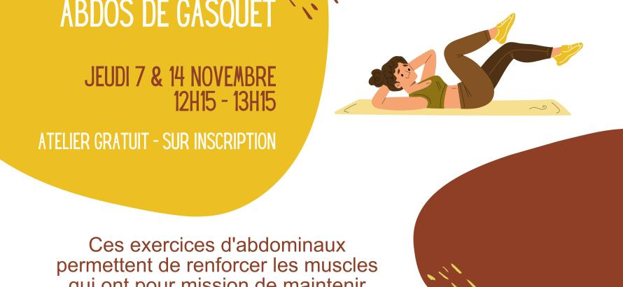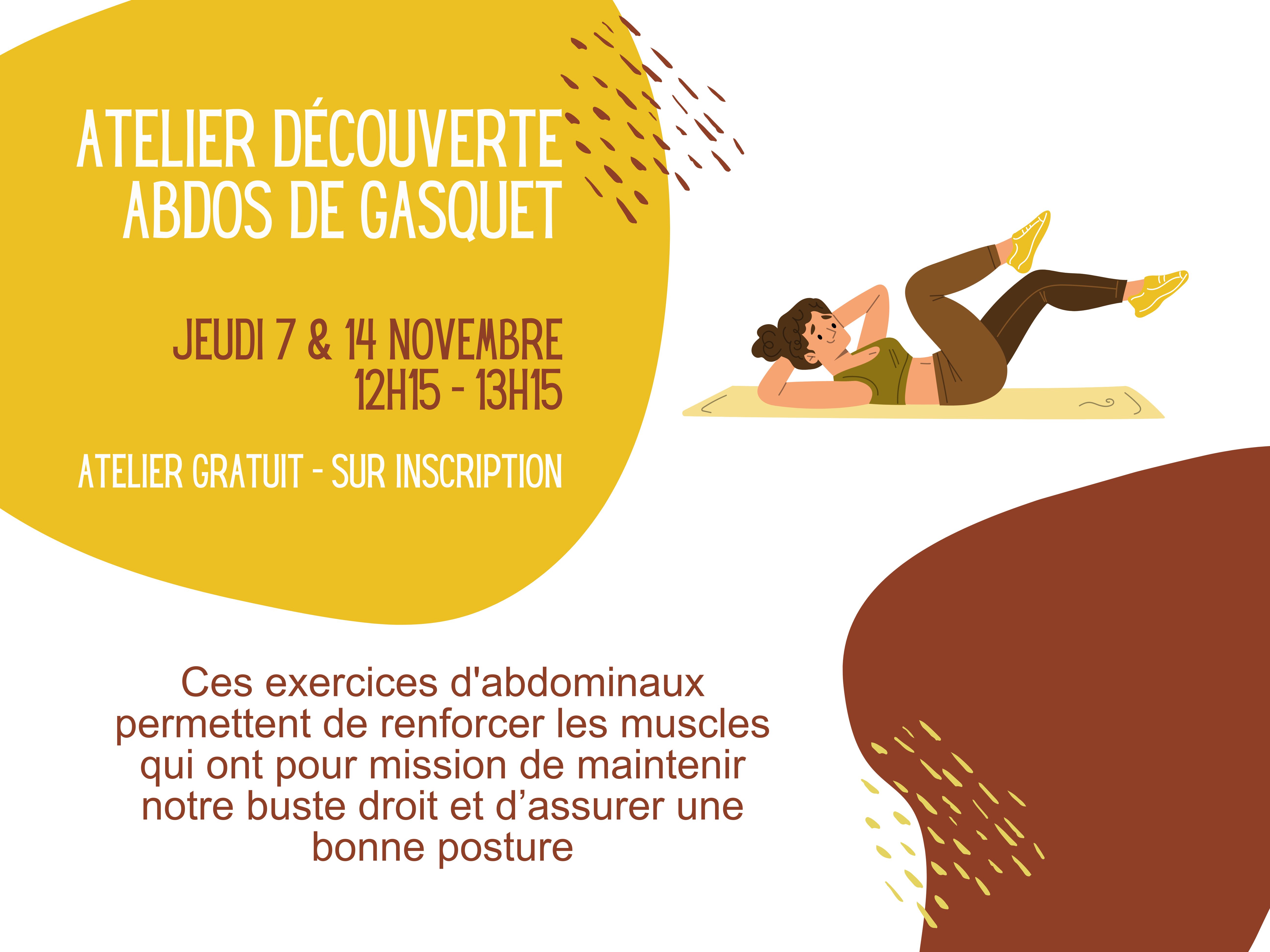 Après deux séances découverte du 𝗤𝗶 𝗚𝗼𝗻𝗴 en Septembre et deux séances découverte de la Respiration en Octobre, nous vous proposons ce mois-ci un cycle autour des Abdos de Gasquet pour se sentir bien dans son 𝗰𝗼𝗿𝗽𝘀 et dans sa 𝘁ê𝘁𝗲 !