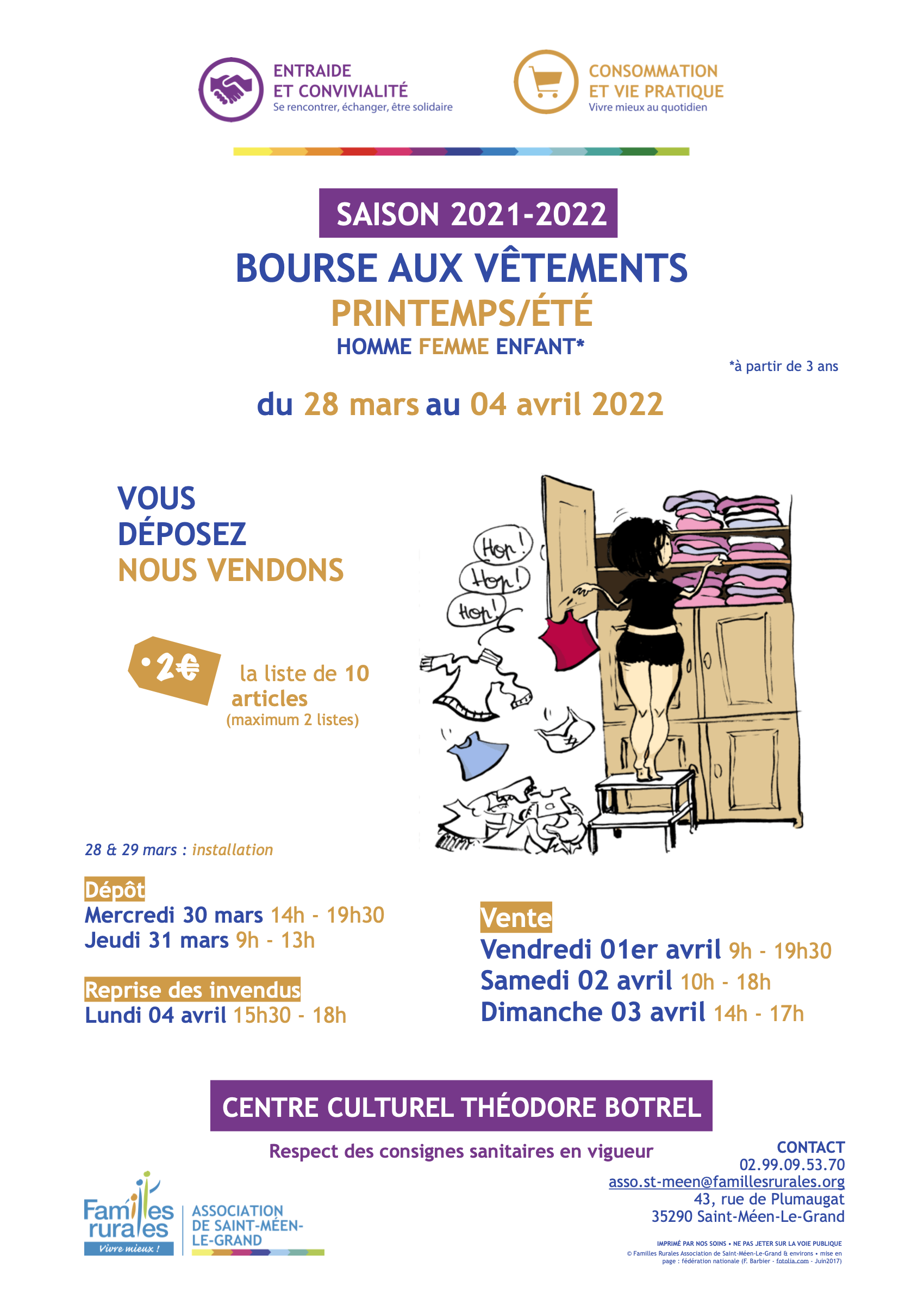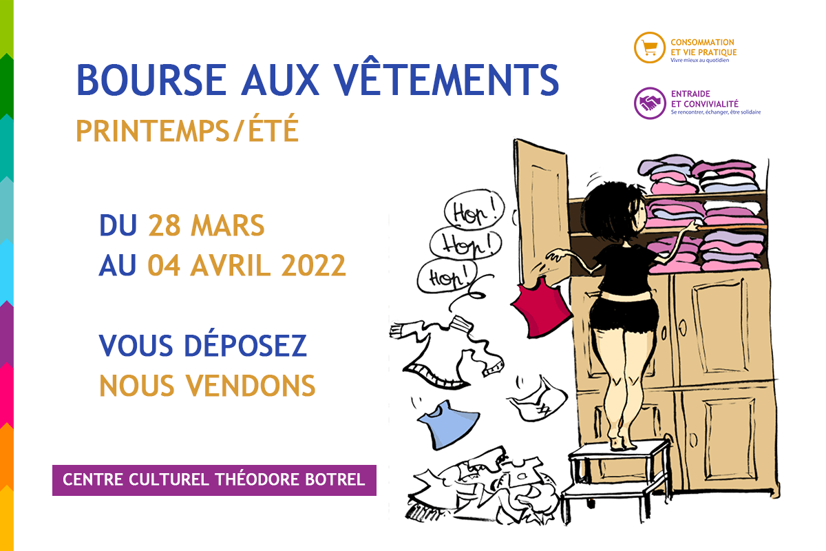 RDV du 28 mars au 04 avril 2022 pour l'édition Printemps/Eté de la Bourse aux Vêtements au Centre Culturel Théodore Botrel à Saint-Méen-Le-Grand!