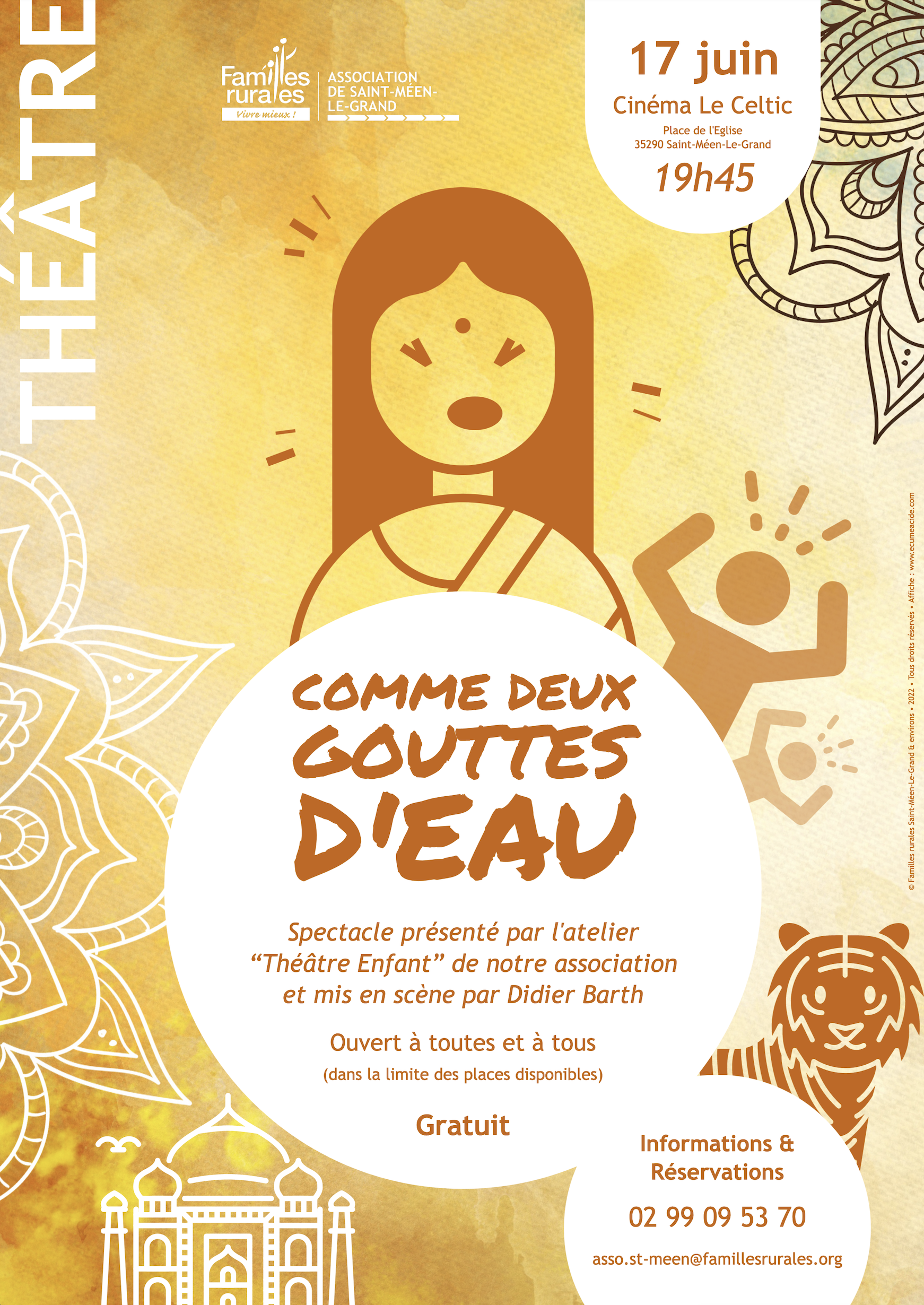 RDV vendredi 17 juin pour découvrir "Comme deux gouttes d'eau", le spectacle que vous propose l'atelier "Théâtre Enfant" de notre association