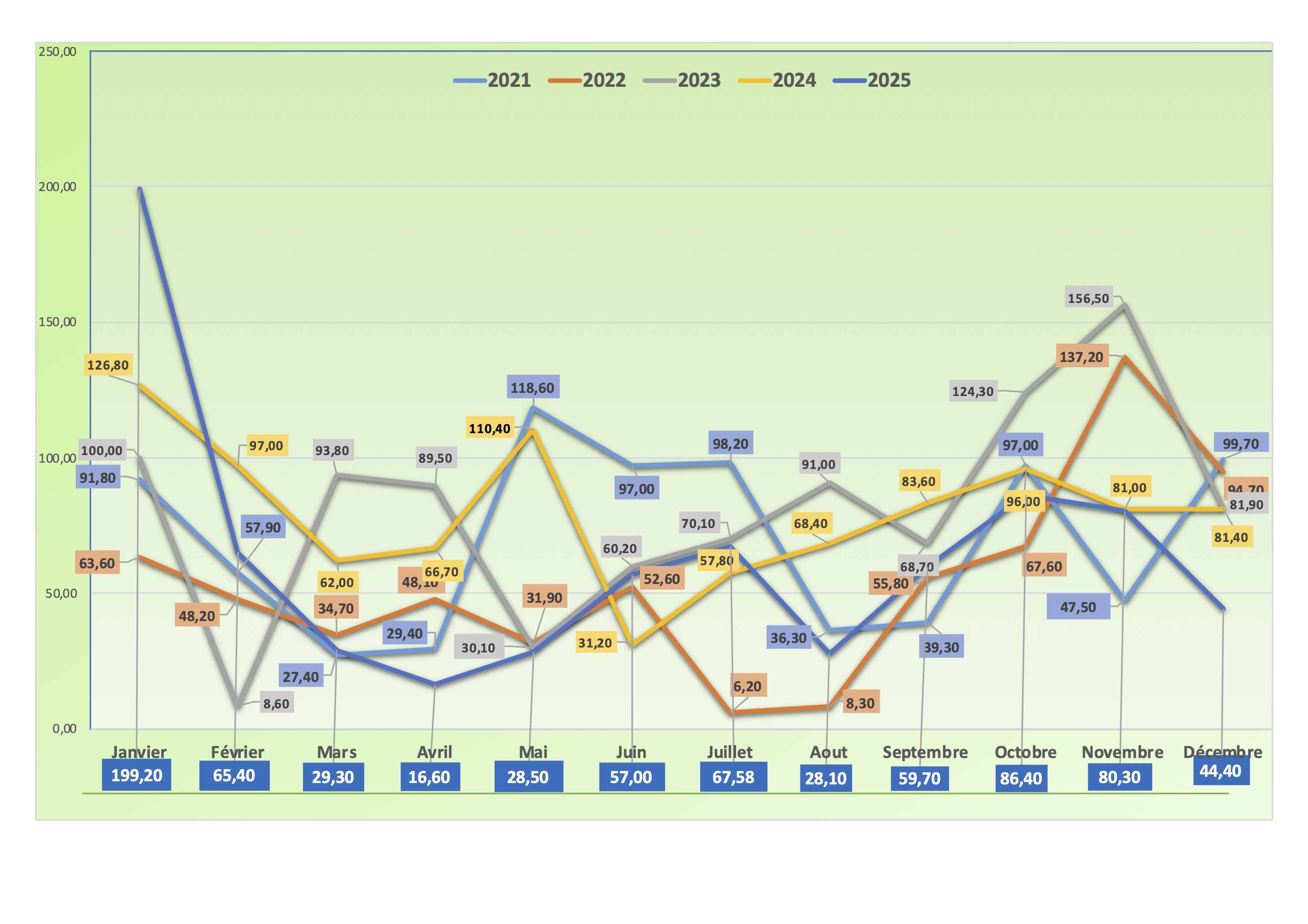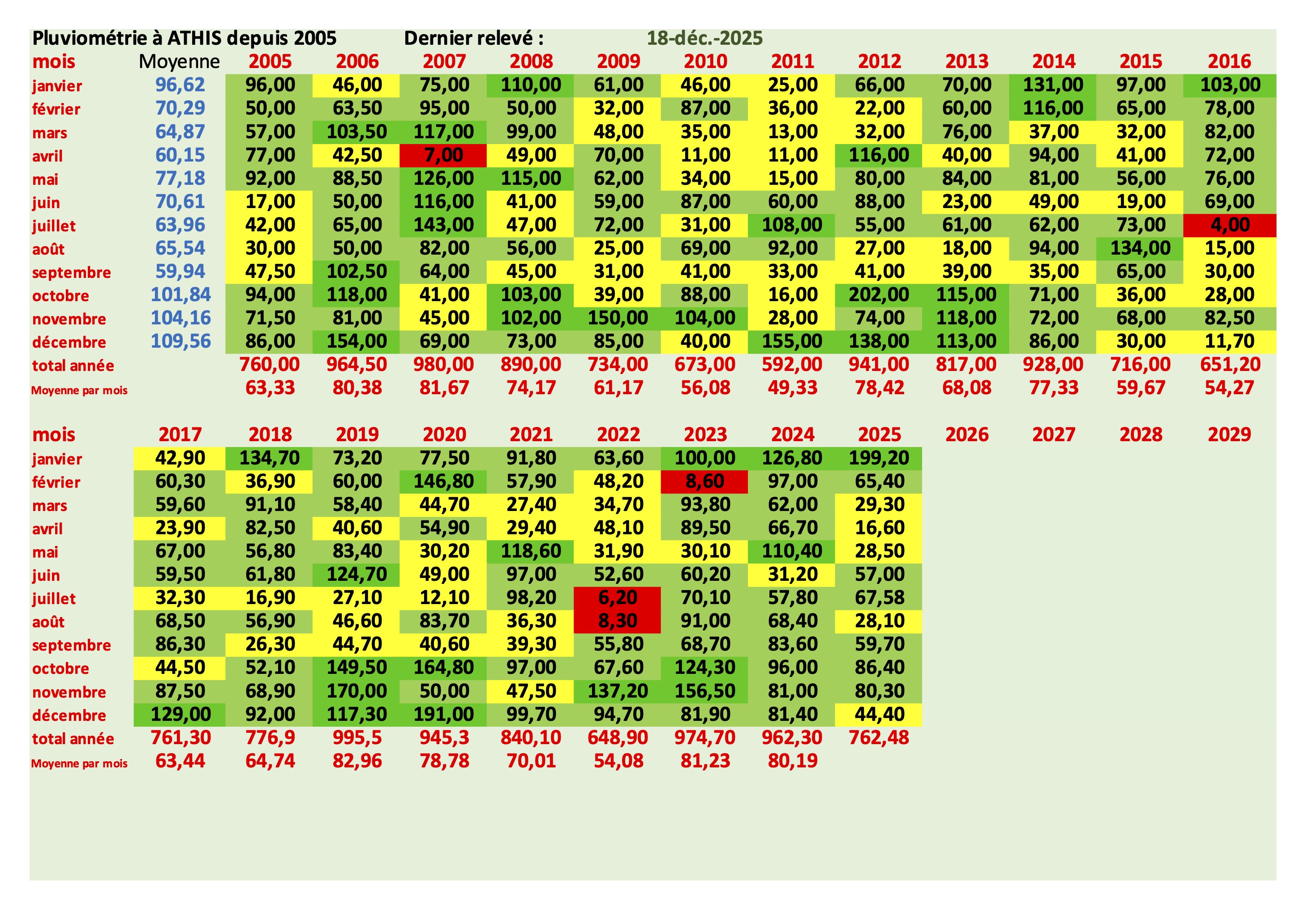 PLUVIOMÉTRIE à ATHIS depuis 2005