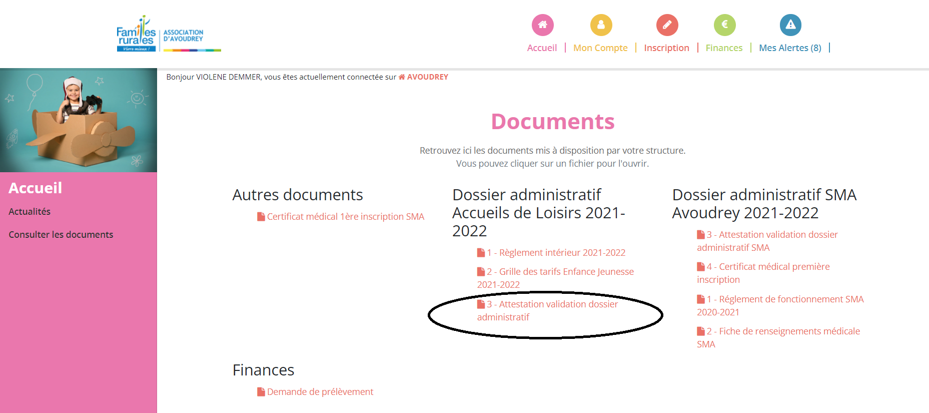 Rendez-vous dans le menu ACCUEIL et dans la colonne de gauche " Consulter les documents".