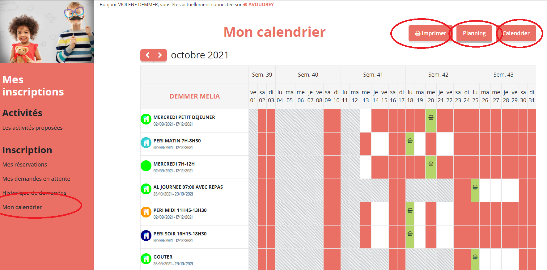 A TOUT MOMENT VOUS POUVEZ CONSULTER OU IMPRIMER LE PLANNING DE L'ENFANT