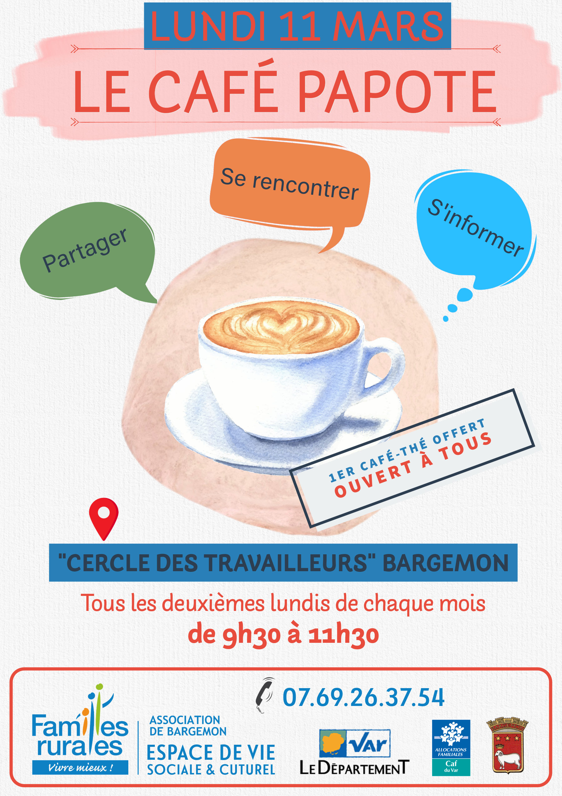 À partir du 11 mars, nous vous proposons un "Café Papote" pour toutes les personnes qui souhaitent se rencontrer, échanger, discuter, partager des idées, des conseils...