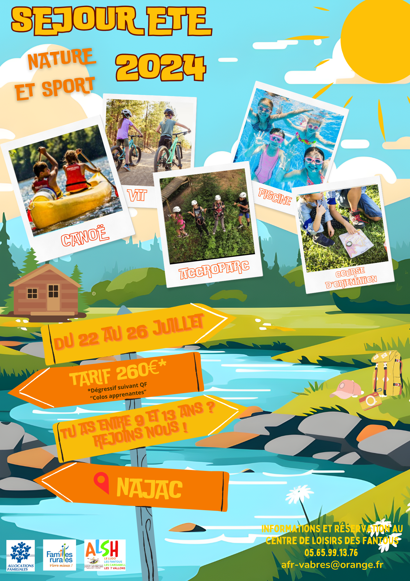 Du lundi 22 au vendredi 26 juillet a eu lieu de séjour à Najac dans lequel était présent 12 enfants de 9 à 10ans et 8 adolescents de la salle des jeunes de Vabres de 11 à 13ans