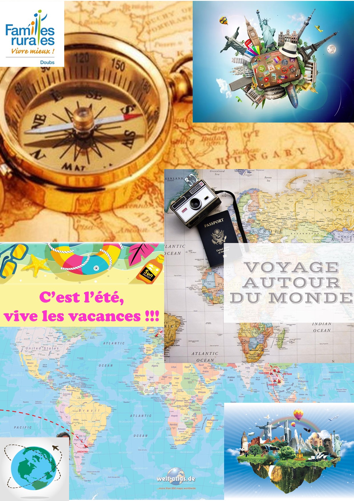 Durant 4 semaines, prends ton billet, fais tes valises et viens voyager autour du monde avec nous pour découvrir divers pays et continents.