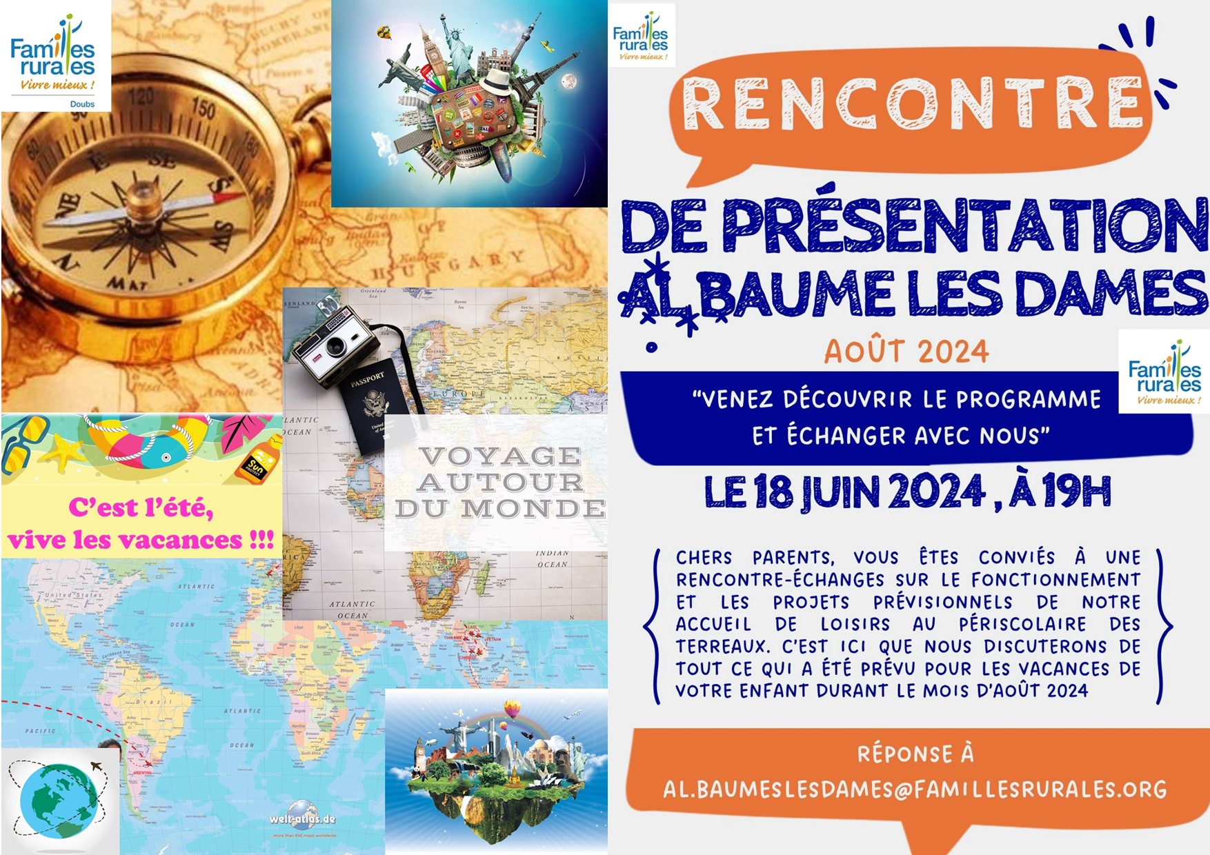 Réunion de présentation de l'accueil de loisirs organisé par la CCDB et Familles Rurales mardi 18 juin 2024 à 19h