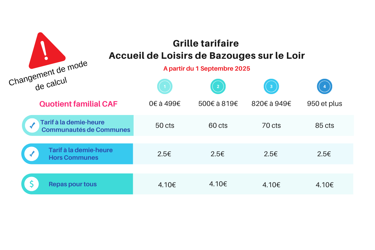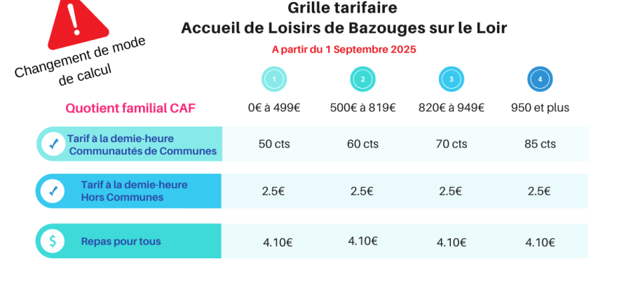 Changement de tarification ALSH, à partir du 1er septembre 2025 avec quotient familial CAF