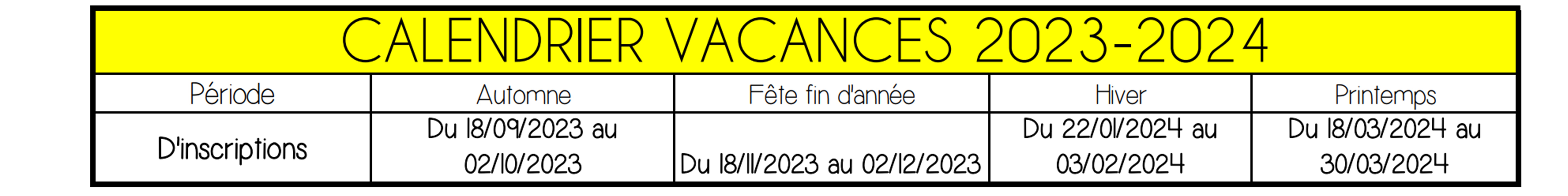 D'inscription | du 15 au 28 septembre | du 17 au 30 novembre | du 12 au 25 janvier | Du 09 au 22 mars |
