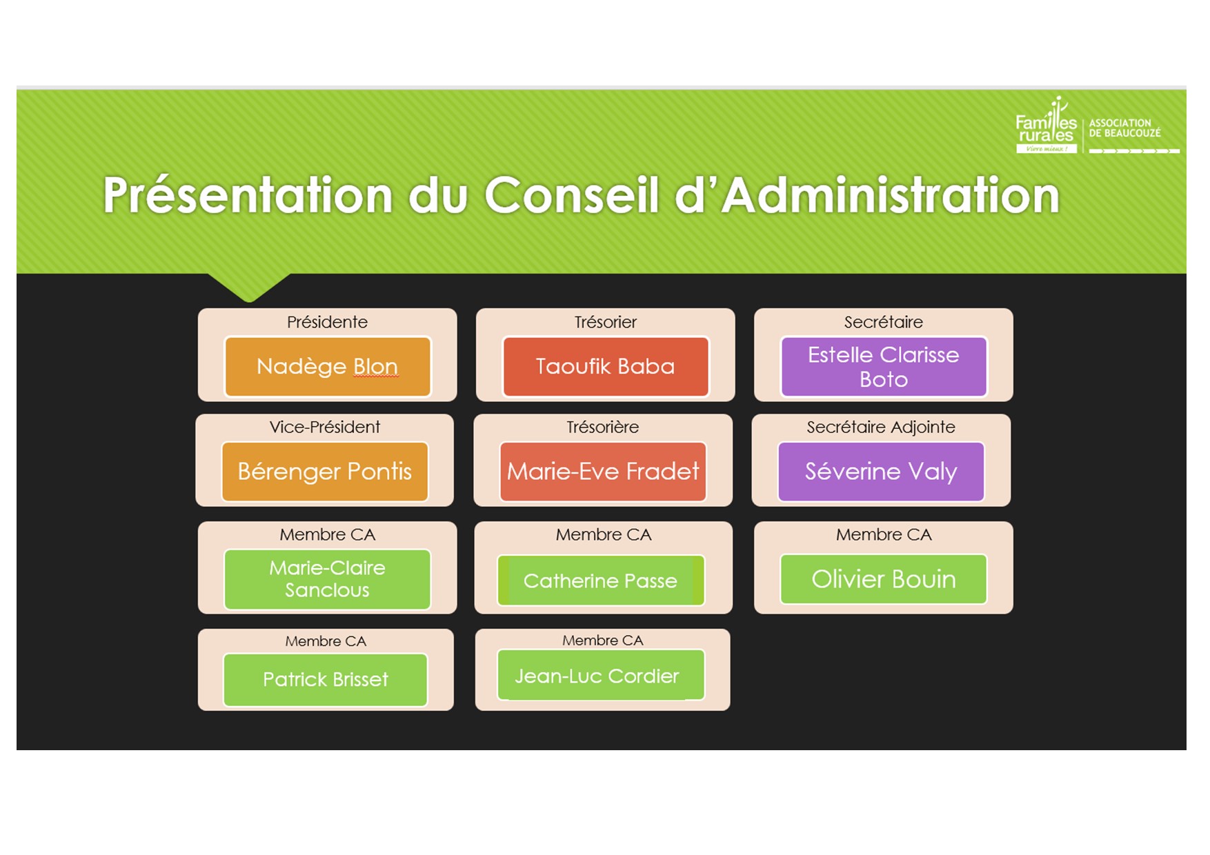 L'équipe associative est composée d'un conseil d'administration élu / bénévole et d'une équipe salariée