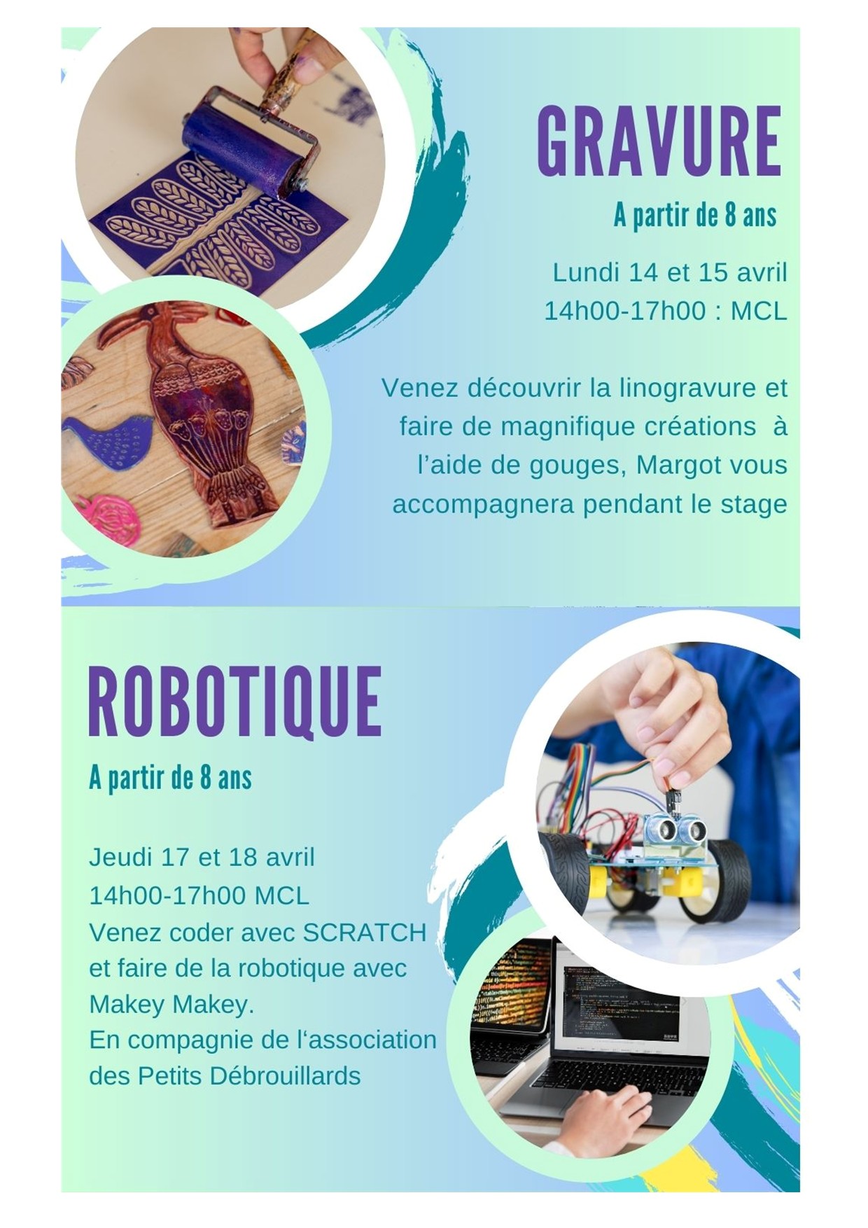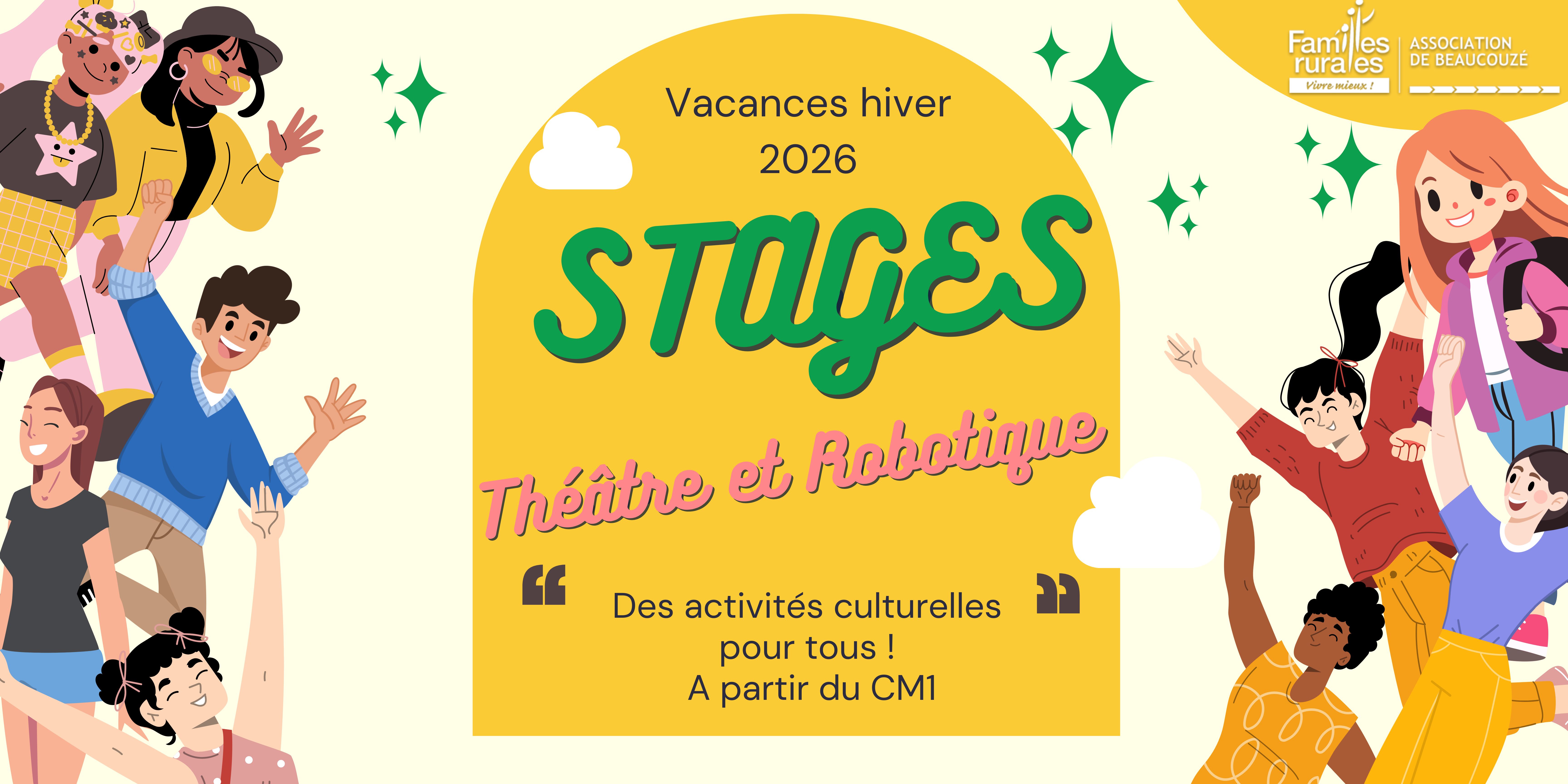 L’association Familles Rurales de Beaucouzé organise deux stages à l'hiver pour les enfants de plus de 9 ans :PROG' STAGE HIVER 2026