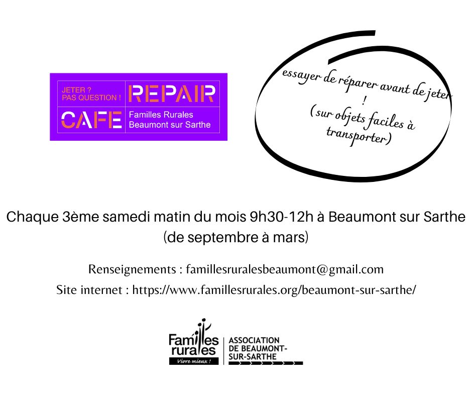 Le repair café est ouvert aux non adhérents Familles Rurales mais n'est pas gratuit. Le prix est libre, chacun donne donc quelque chose pour participer à l'acquisition d'outils ou matériaux en remplacement des usures ou utilisations car ils sont fournis par les animateurs.