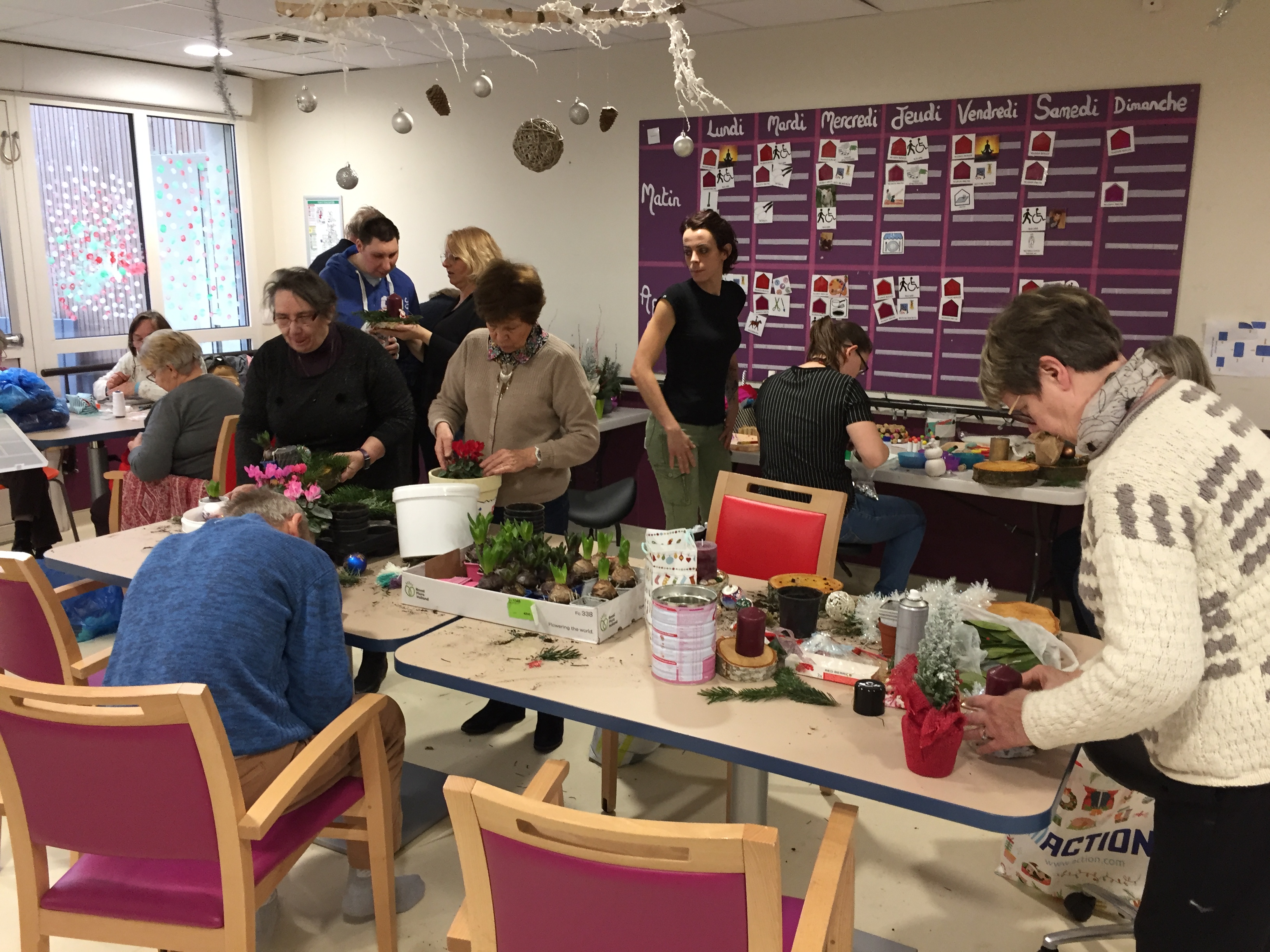 La MAS (Maison d'Accueil Spécialisée) Coeur de vies a été ouverte au printemps 2018 et accueille des handicapés lourds. Depuis l'automne 2018, des rencontres sont organisées toutes les six semaines environ entre les résidents et des volontaires de l'association FAMILLES RURALES. Ces rencontres ont un triple objectif: apporter aux résidents et à leurs accompagnants une ouverture sur le monde extérieur et une socialisation, faire découvrir le monde du handicap aux grenésien/nes, et aider la MAS en effectuant quelques petits travaux: couture, confection d'outils pédagogiques, préparation du marché de Noël, etc...