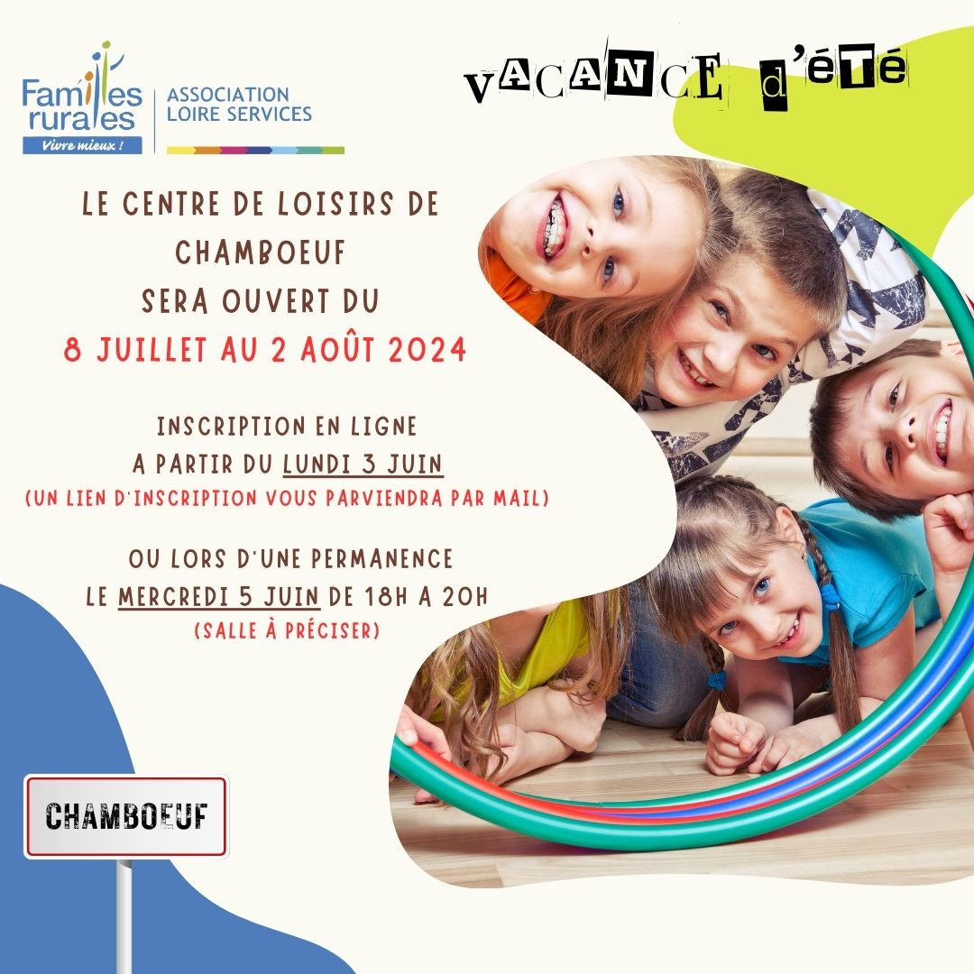 L'accueil de loisirs de Chamboeuf ouvre ses portes du 07 juillet au 08 août.