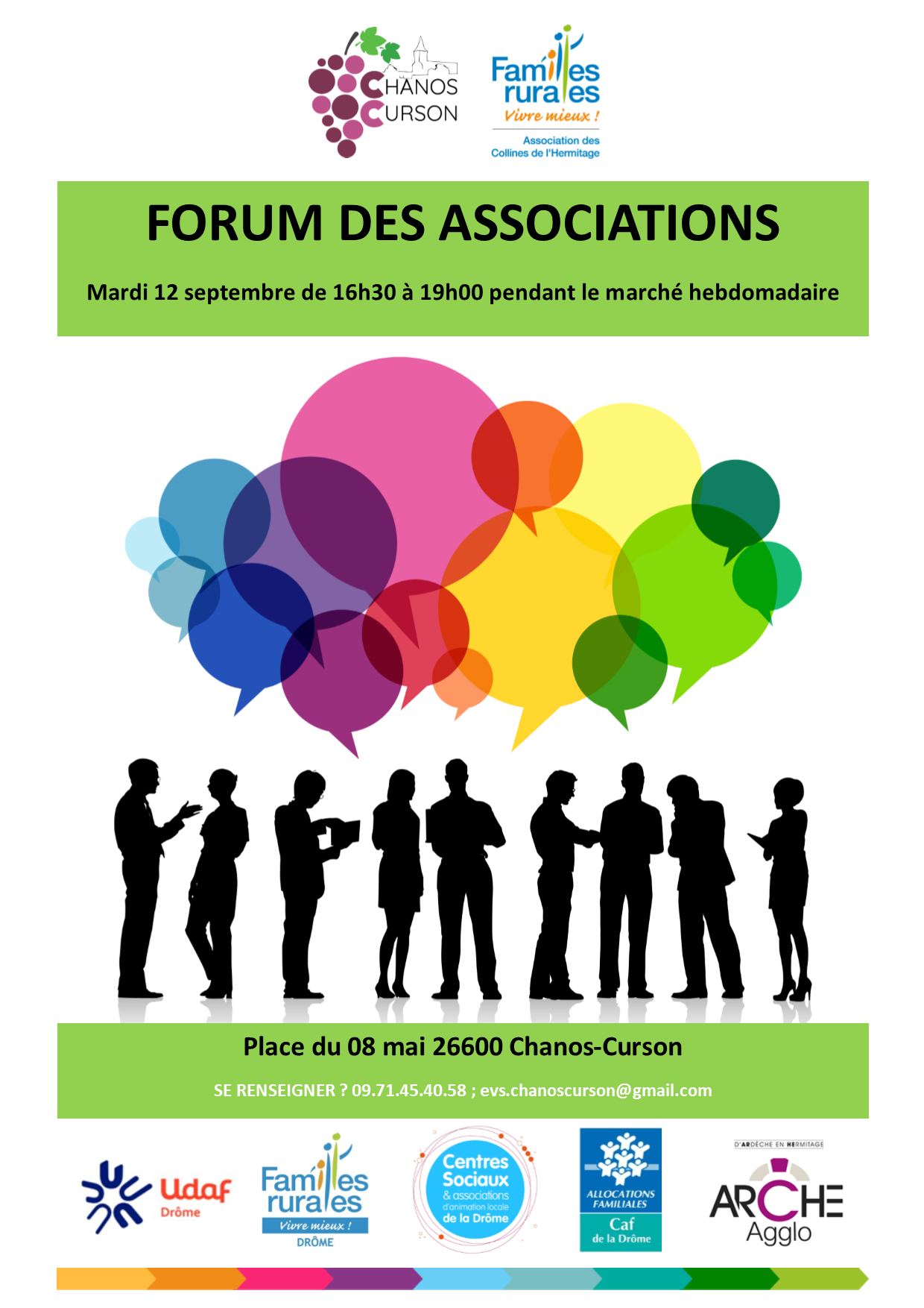 Sont inscrites : Adapei 26, Amicale Laïque, Ayana Yoga, Bibliothèque de Chanos-Curson, Dojo des Collines, Familles Rurales, Gymnastique Volontaire Drôme des Collines, KravMaga EKM 26/07, MJC Chanos Curson, Pass Ado, SeinFormer Cancer, Viet Vu Dao.