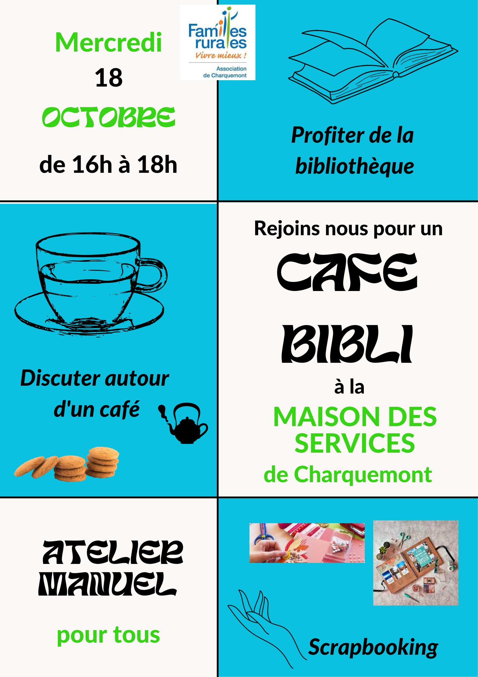 Café Bibli de 16H à 18H à la Maison des Services de Charquemont le mercredi 18 octobre