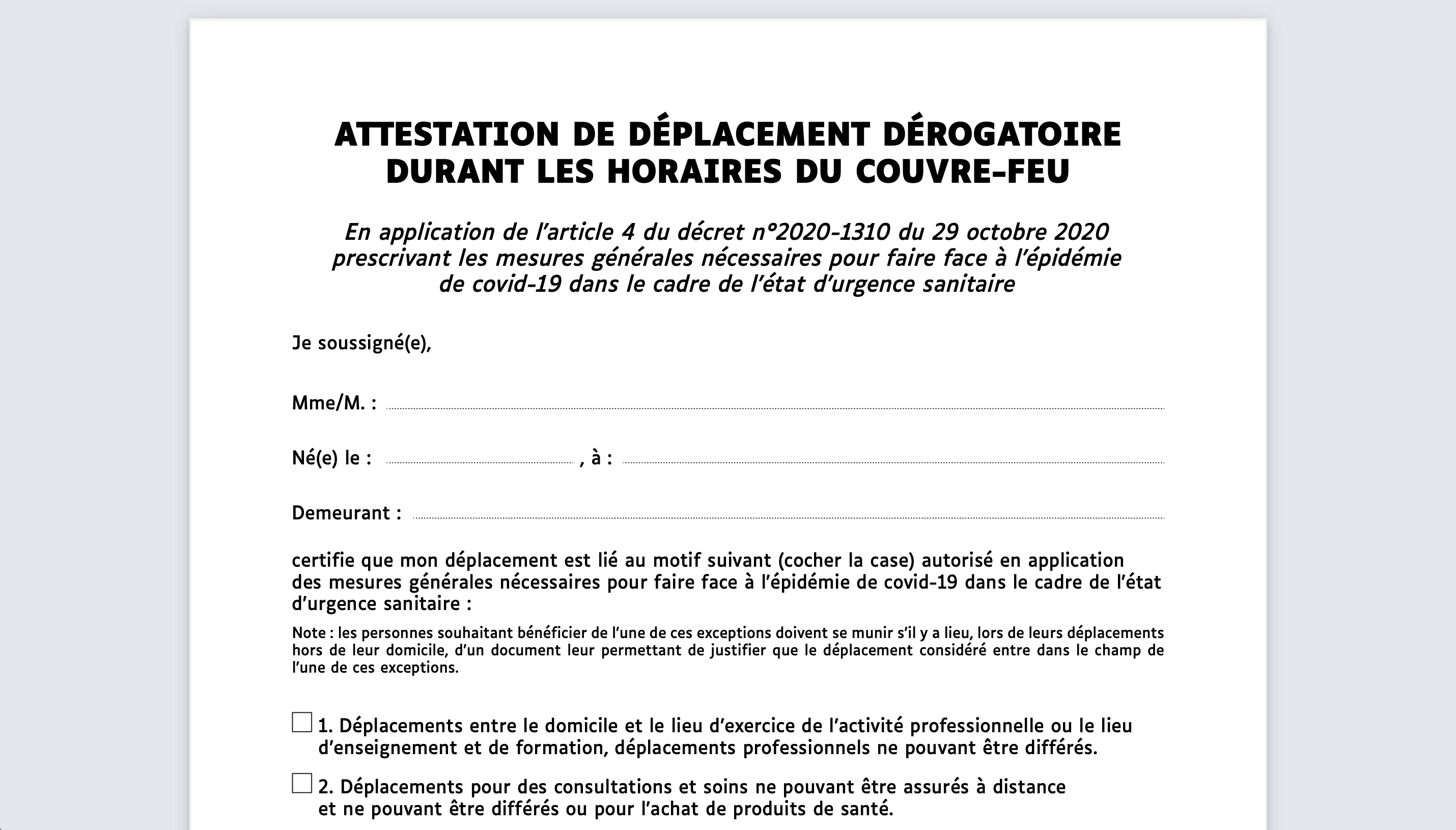 A télécharger l'attestation de déplacement 25 août 2020 En savoir plus attestation-de-deplacement-derogatoire-couvre-feu-pdf.pdf146.88 Ko