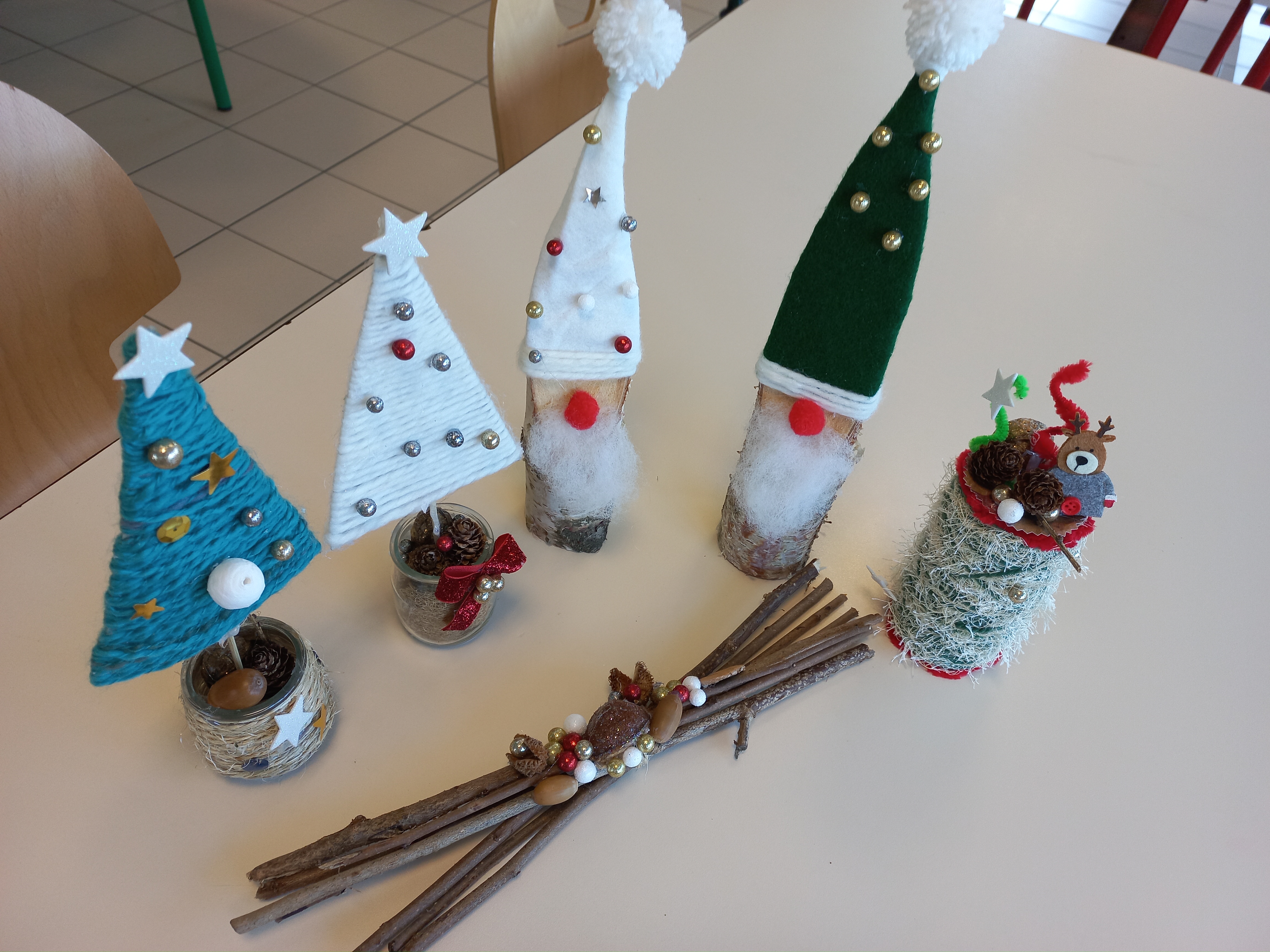 Durant de longues semaines, ils ont confectionnés de jolies décorations qui égaieront vos tables de fin d’année. Pour rendre ce moment convivial, thé, café et petits gâteaux vous seront offert en soirée. Merci d’avance et joyeuses fêtes de fin d’année.