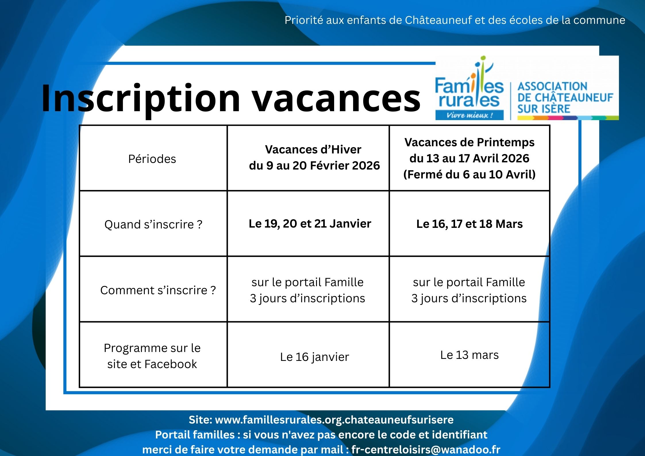 EN 2026 LE CENTRE SERA FERME :_DU 6 AU 10 AVRIL__DU 3 AU 24 AOUT REOUVERTURE LE MARDI 25 AOUT__DU 28 DECEMBRE AU 1 JANVIER 2027_