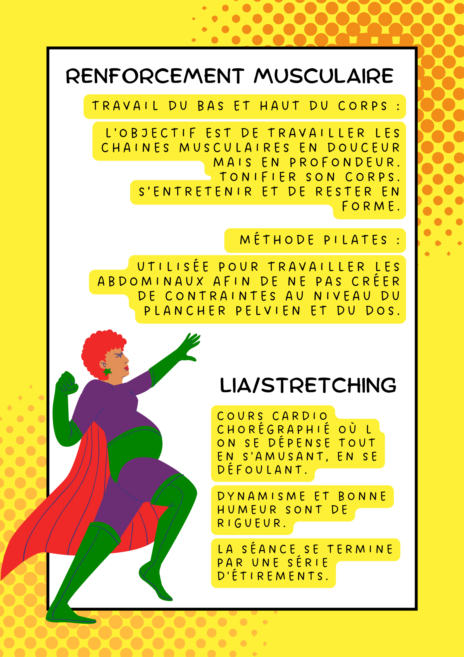 Vous commencez par un renforcement musculaire ciblé (avec ou sans accessoires) pour tonifier votre corps, améliorer votre posture et renforcer vos os dans une ambiance motivante et ludique.