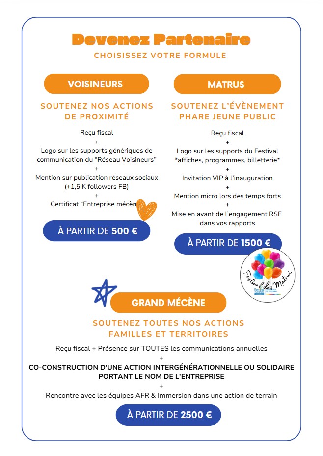 Nous vous proposons 3 formules : "Voisineurs", "Matrus" ou "Grand Mécène"