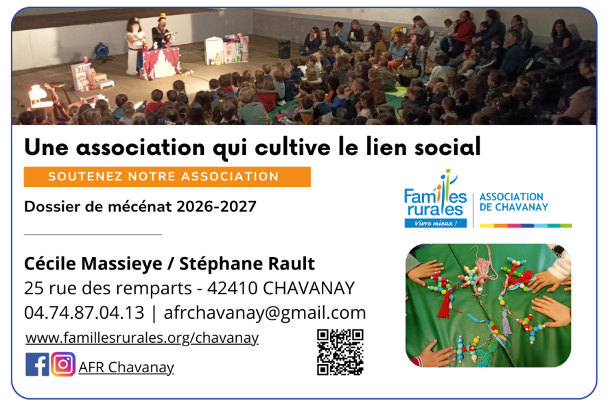 En devenant Mécène de l’AFR Chavanay, vous investissez et participez concrètement dans la qualité de vie, la solidarité et le vivre ensemble sur votre territoire.