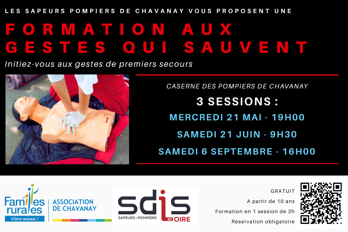 Les Sapeur Pompiers, en partenariat avec l'association Familles Rurales de Chavanay vous forment aux gestes qui sauvent.