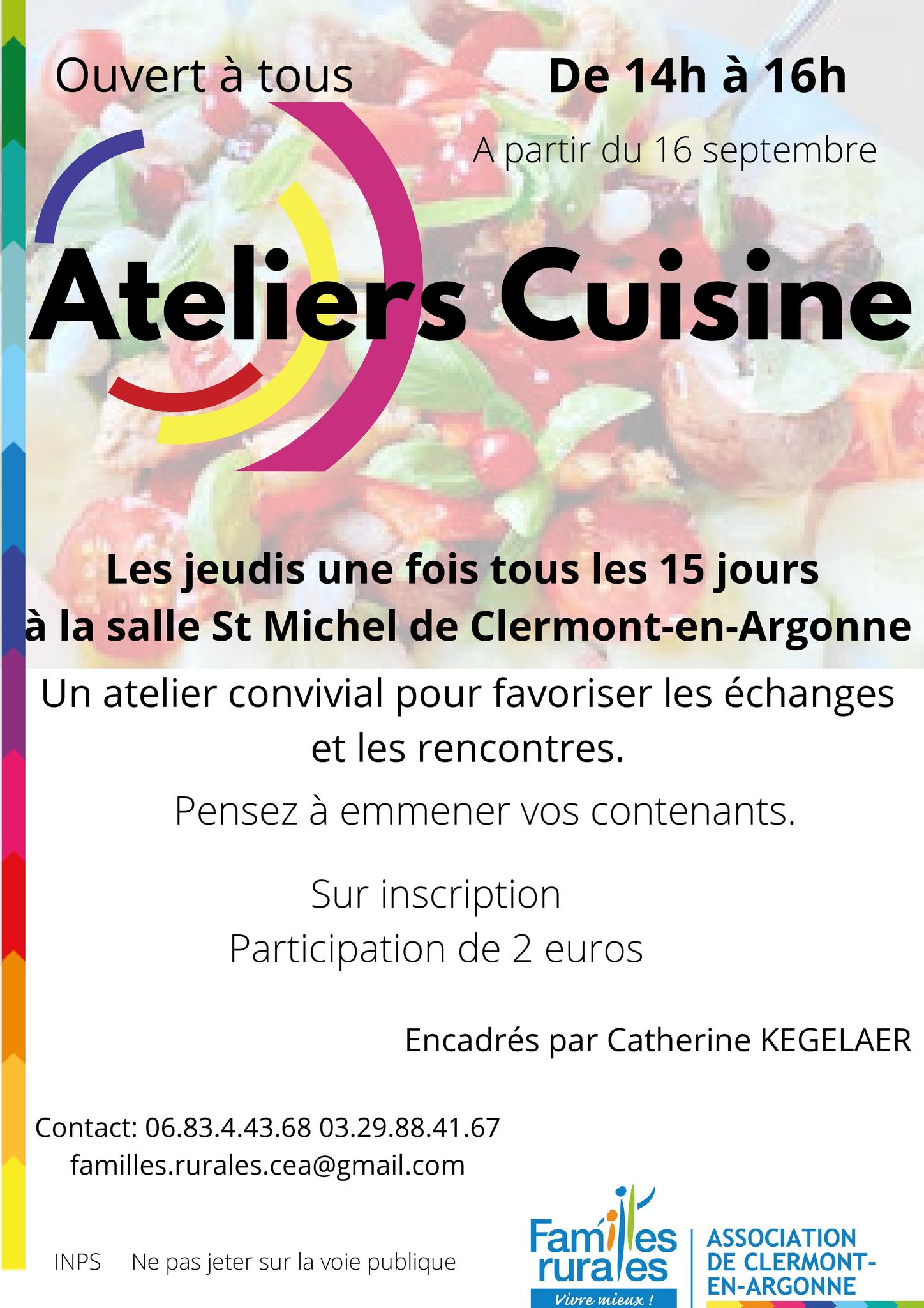 Les prochains ateliers cuisine : Jeudi 30 septembre Jeudi 14 octobre Jeudi 18 novembre4 places disponiblesPass sanitaire obligatoireToutes les infos sur l'affiche ci-dessous...