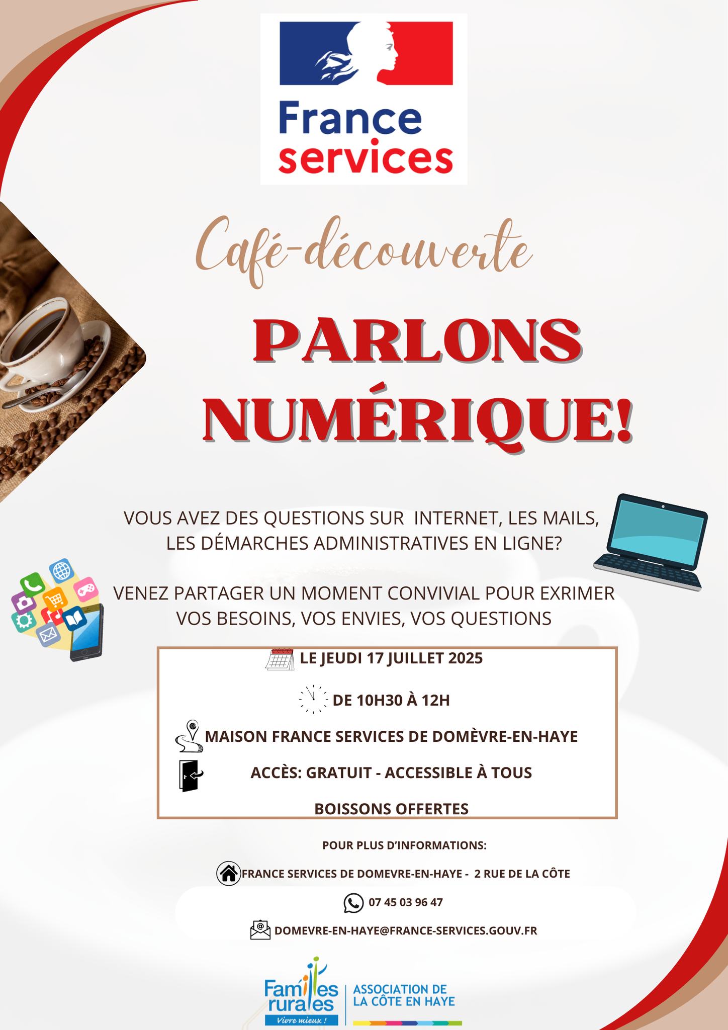 Dans une ambiance détendue, nous répondrons à vos questions et vous aiderons à mieux comprendre les outils et démarches en ligne.