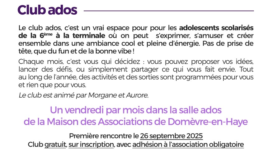 Club ados 11ans (6éme) - 17 ans