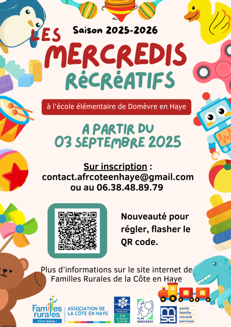 Une équipe d'animateurs prendra en charge vos enfants dans les locaux du périscolaire à l'école de Domèvre en Haye de 9h00 à 17h00 avec possibilité de garderie de 7h30 à 9h00 et 17h00 à 18h30