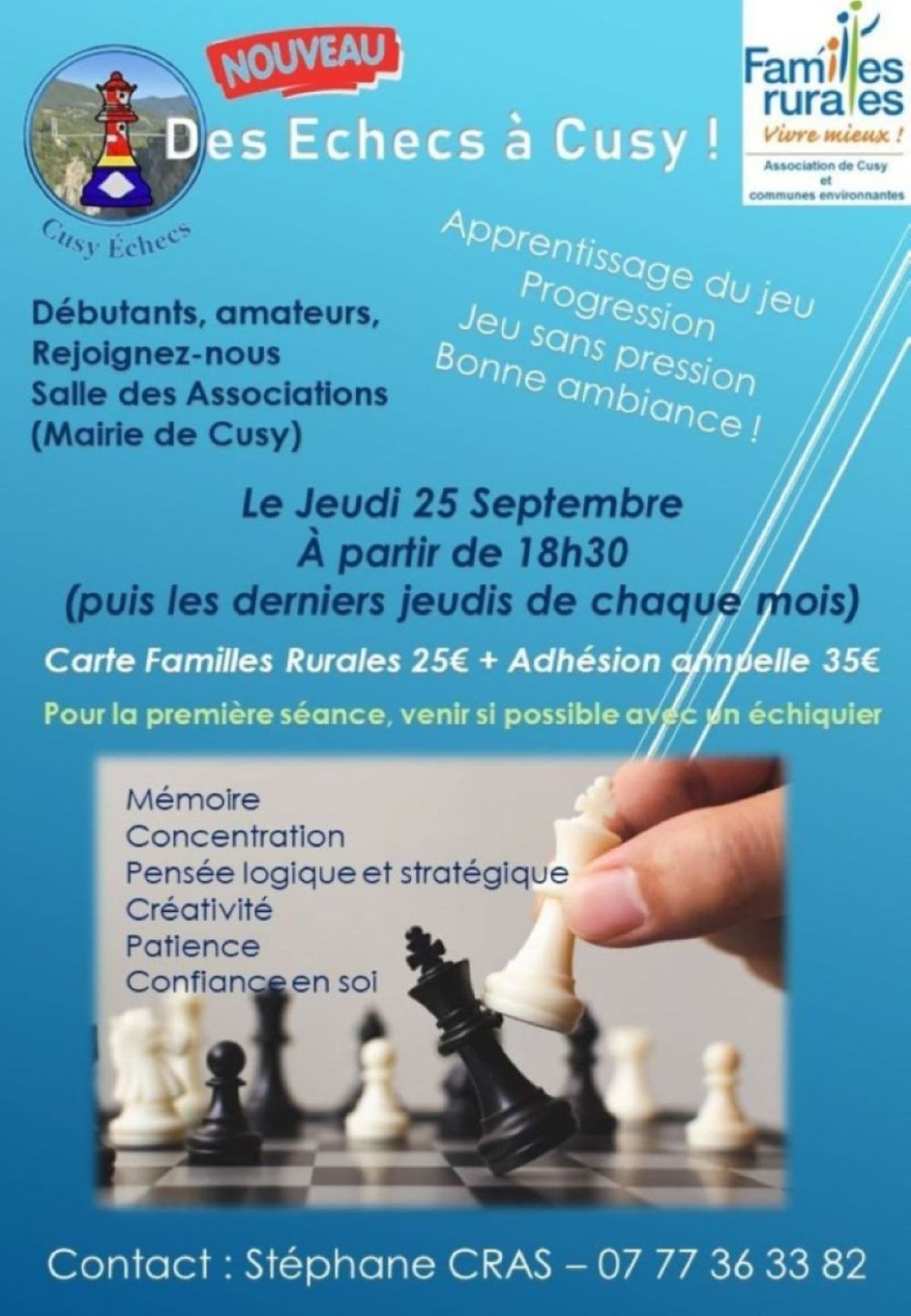 LES ECHECS UNE NOUVELLE ACTIVITE A PARTIR DU 25 SEPTEMBRE A CUSY