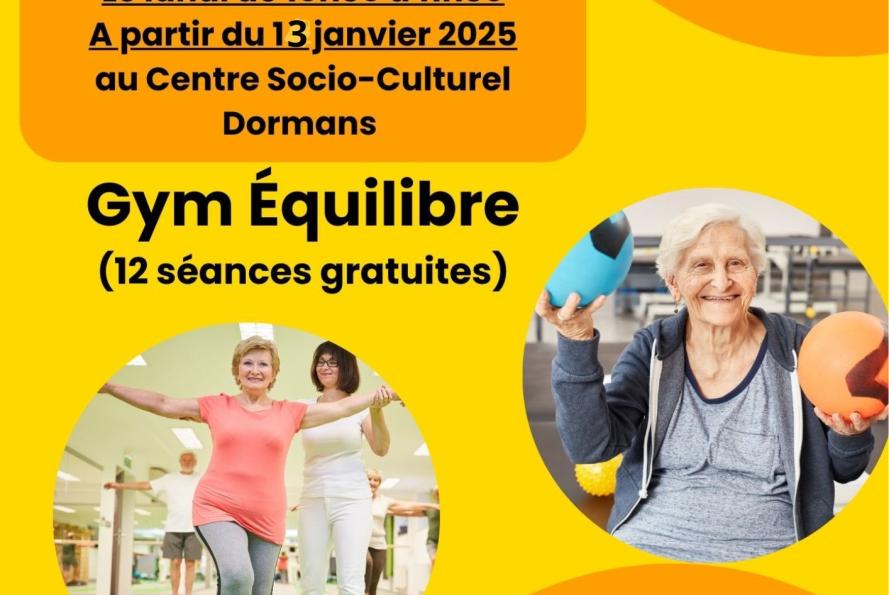 Rejoignez-nous dès le 14 janvier pour une session de 12 séances dédiées à l’équilibre. 👉 Objectifs : • Améliorer votre équilibre et votre coordination • Renforcer vos muscles en douceur 📅 Début : 14 janvier 📆 Durée : 12 séances 📍 Lieu : Centre Socio-Culturel Dormans Inscrivez-vous dès maintenant pour garantir votre place ! Pour plus d’informations et inscriptions : accueil.cscfr@gmail.com ou 03.26.58.80.37 Prenez soin de vous, votre corps vous dira merci !