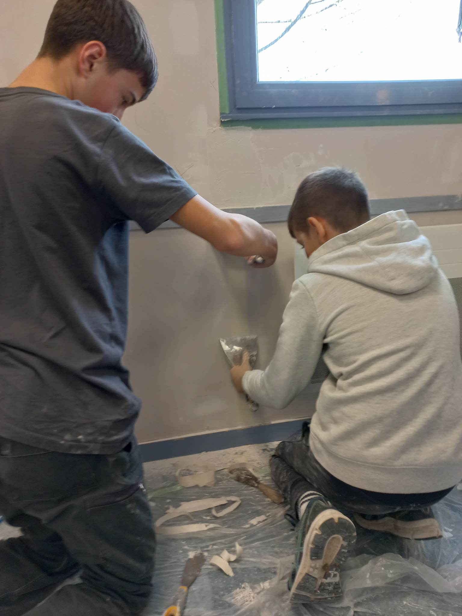 Février 2023: Réfection des enduits et peinture du local ados/espace jeux au centre d'animation