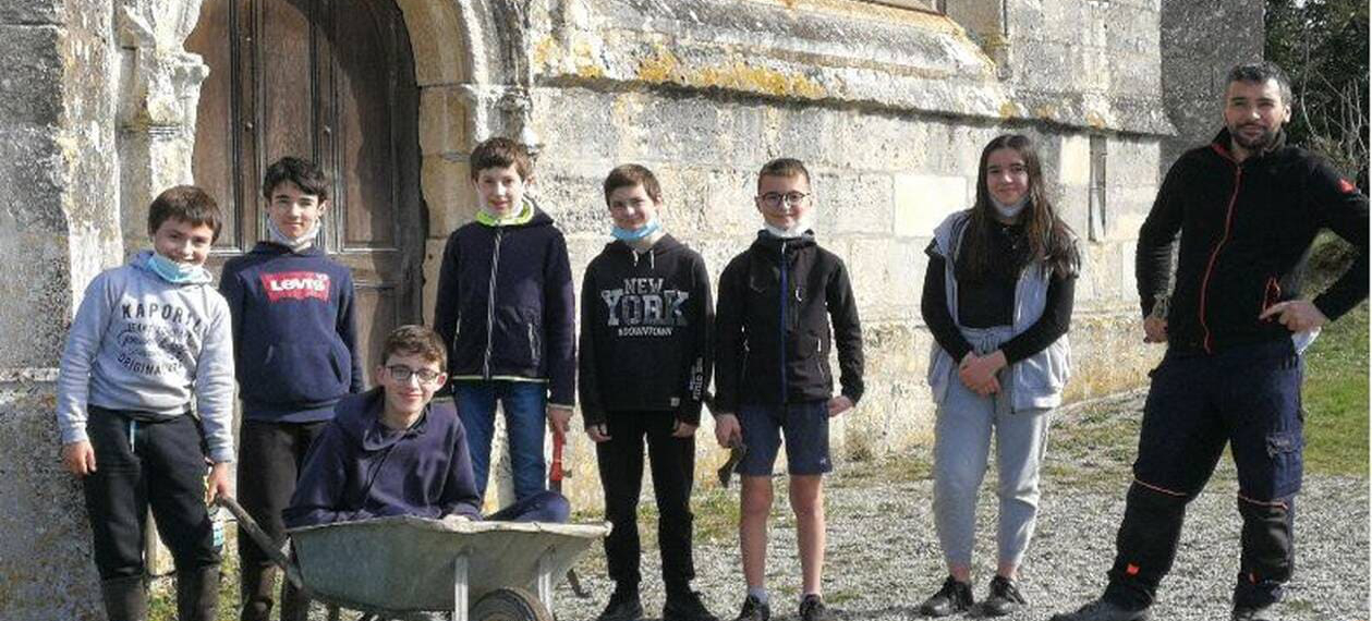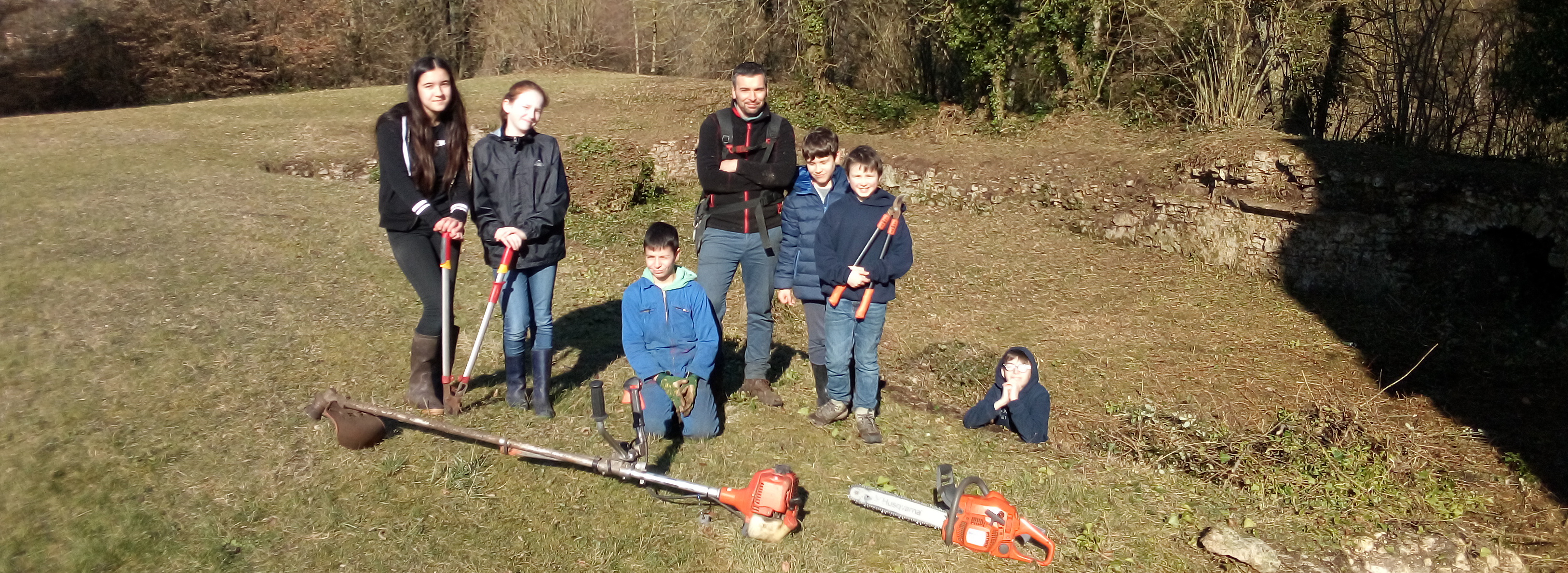 Chantier de jeunes en février 2019 : nettoyage et défrichage des vestiges du château d'Essay