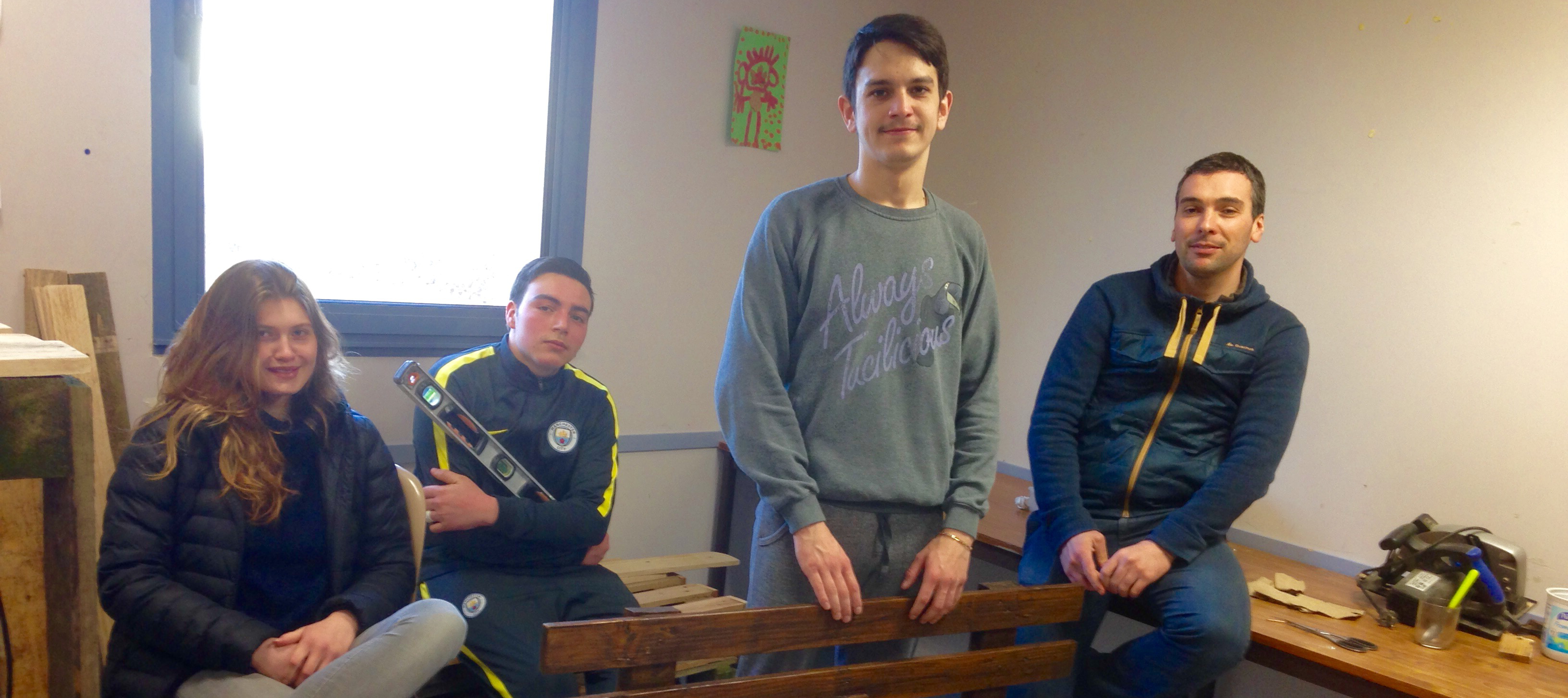 Forest en service civique accompagné de Lola, Clément et Brice ont créé d'avril à juillet 2017,  6 bancs et 2 tables pour les habitants et les promeneurs à Essay!