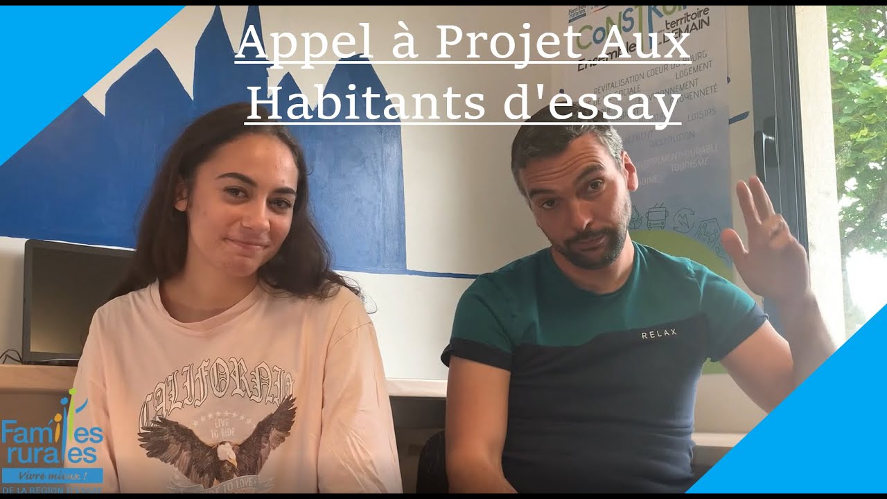 - Création du 1er appel à projet d'Habitants d'Essay: ''Construire ensemble le territoire de demain !'' Regardez le clip de présentation de l'appel à projet réalisé par Yann Chartrain, youtubeur du village, en cliquant sur le lien ci-dessous: |